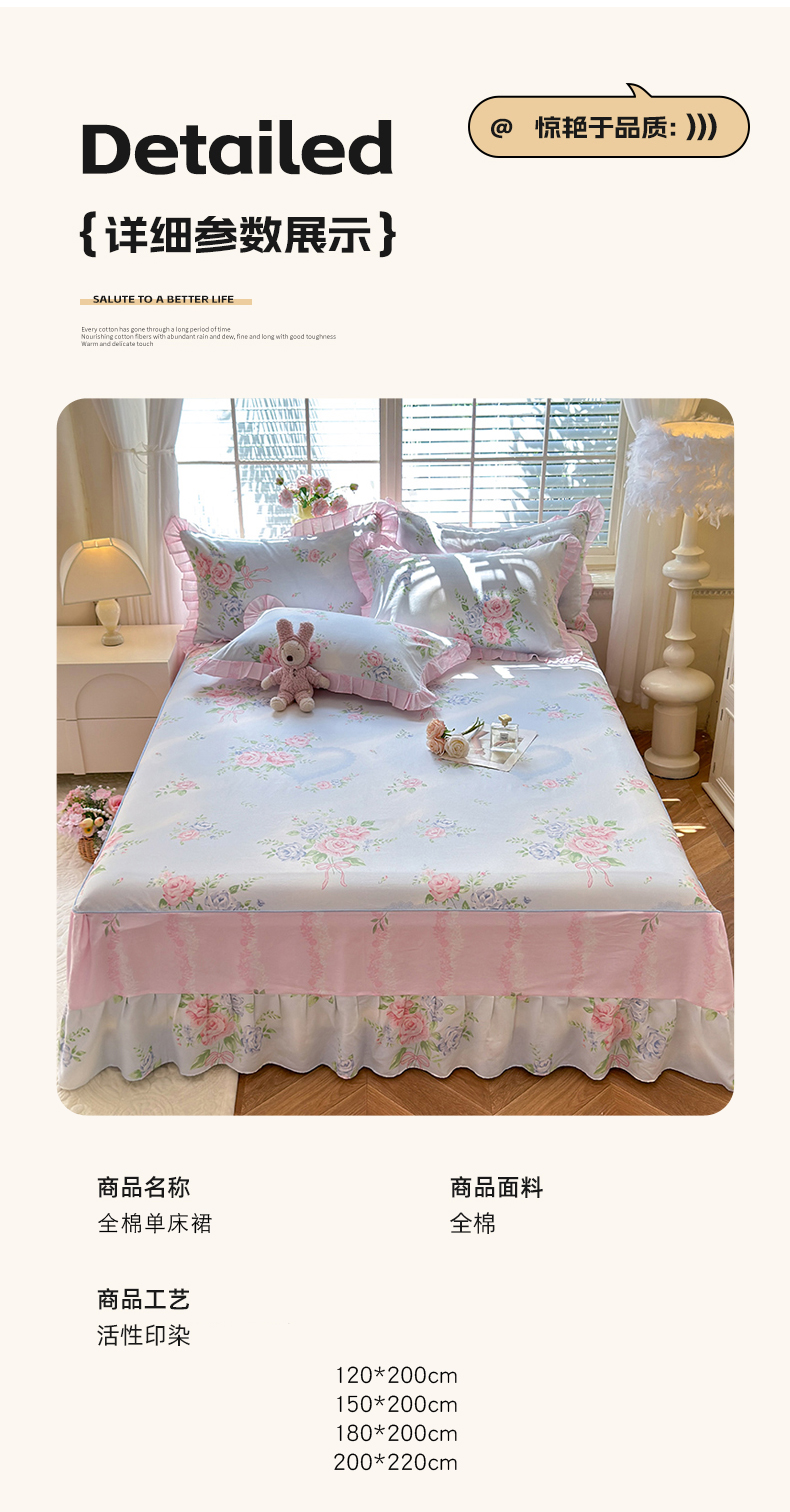 商品名称:美达家纺 2025新款全棉AB版单层床裙 悦棠