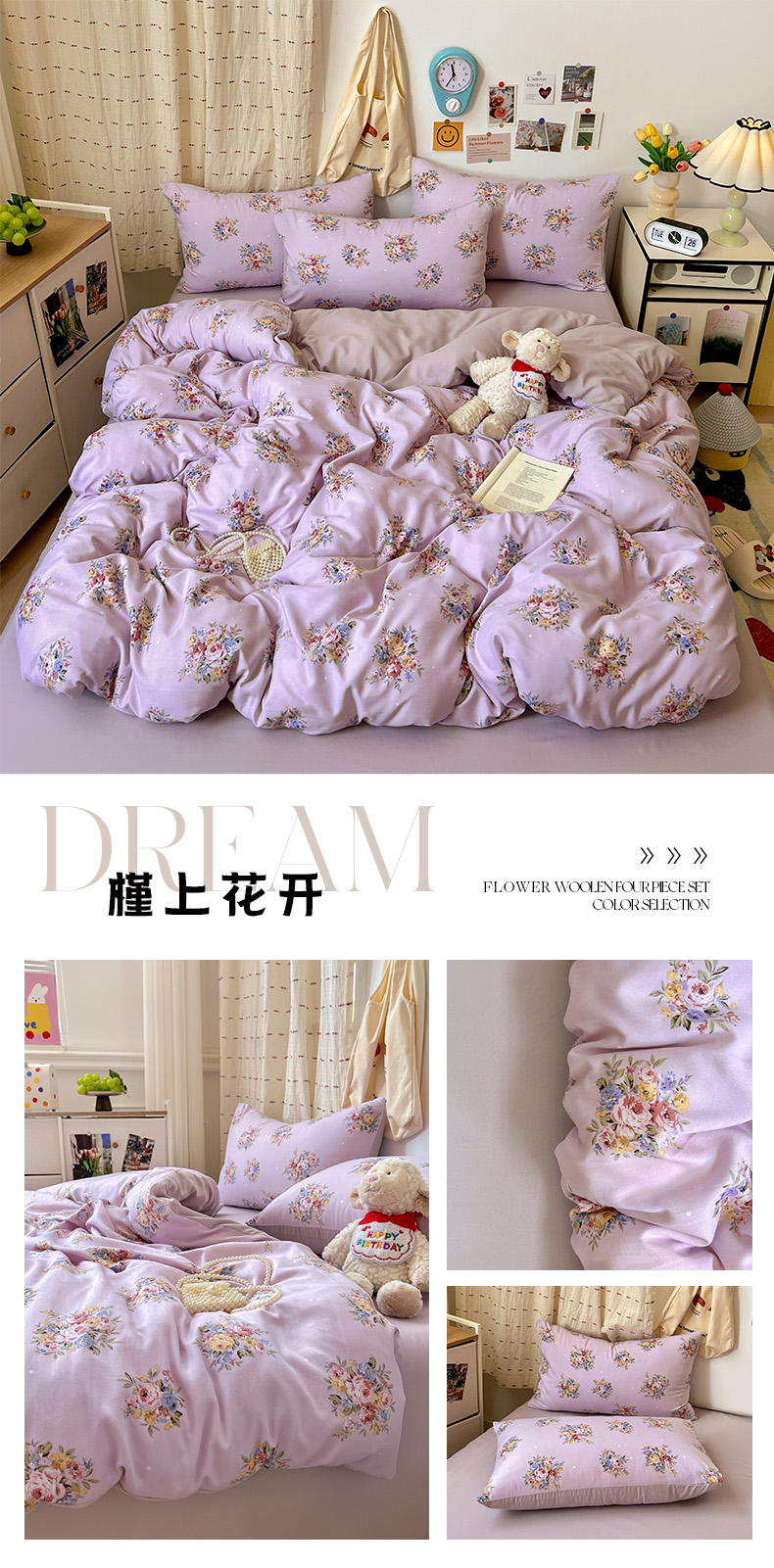 当前位置: 91家纺网 > 商品网购 > 床品套件 > 四件套 > 其它四件套 > 源莱 2025开学季小清新卡通时尚印花水洗双层纱四件套 槿上花开