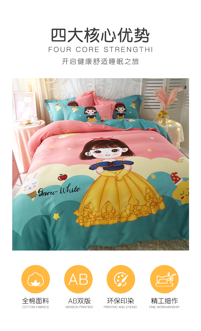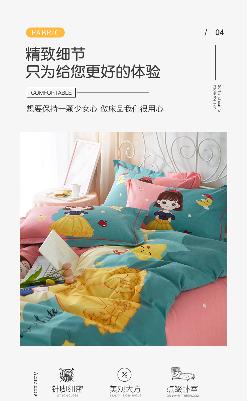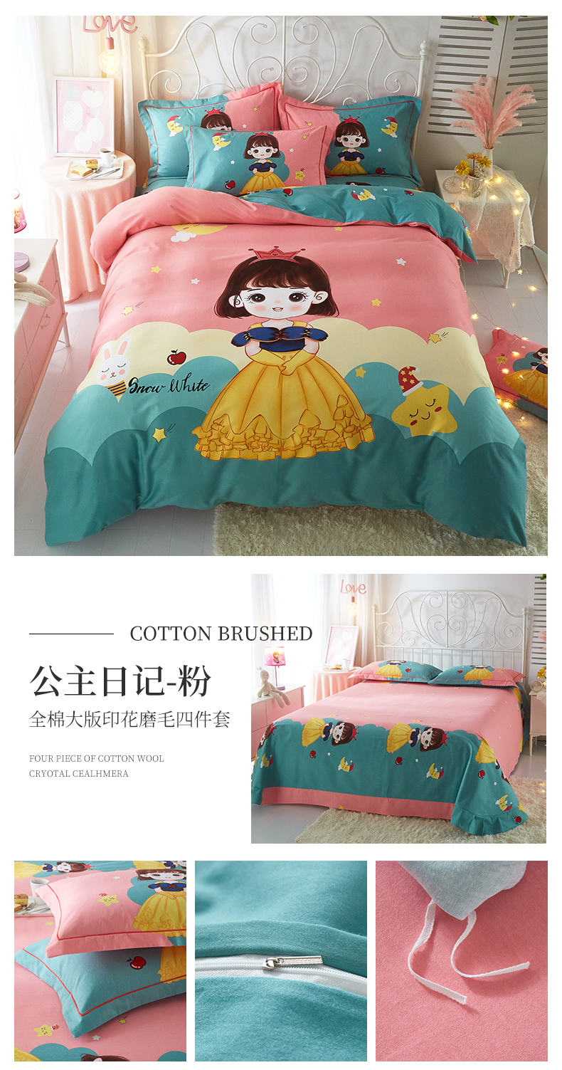 商品名称:格里芬家纺2025新款全棉大版磨毛生态磨毛四件套 公主日记-粉