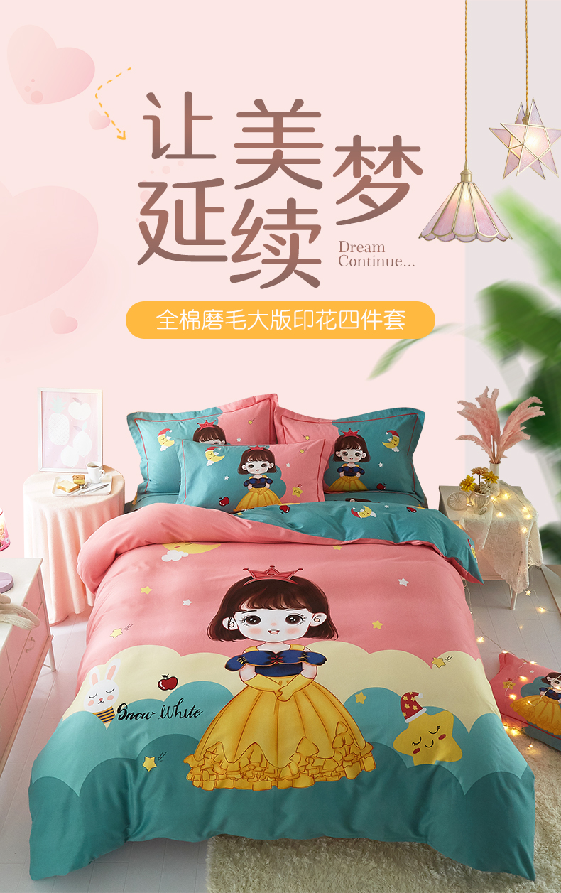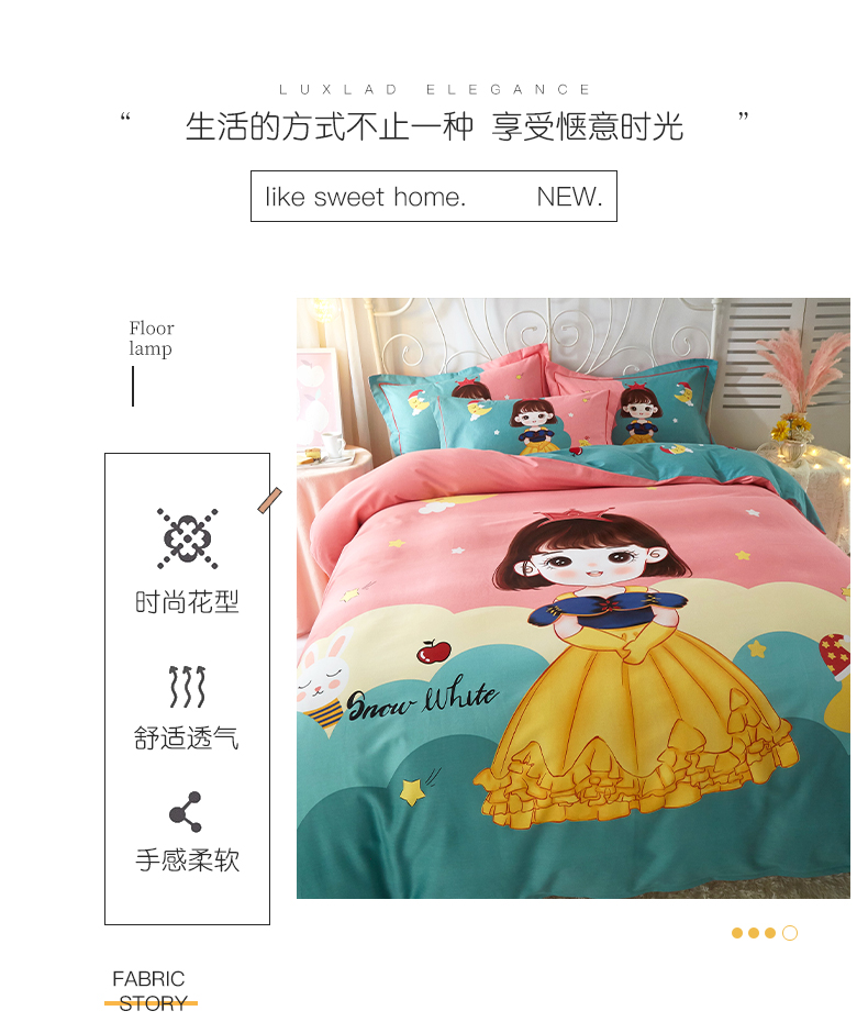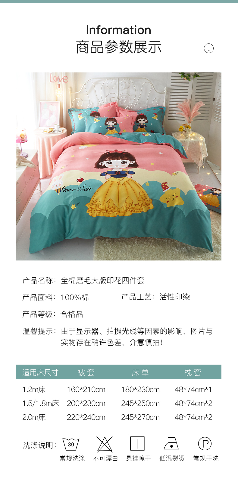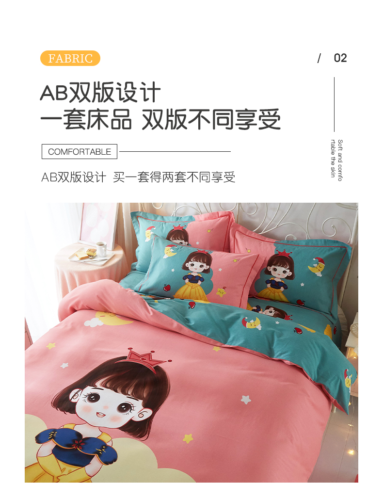 商品名称:格里芬家纺2025新款全棉大版磨毛生态磨毛四件套 公主日记-粉