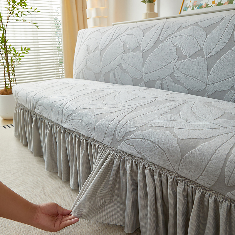 商品名称:丝绮鹿2025新款富贵叶裙边沙发床套 富贵叶-浅灰