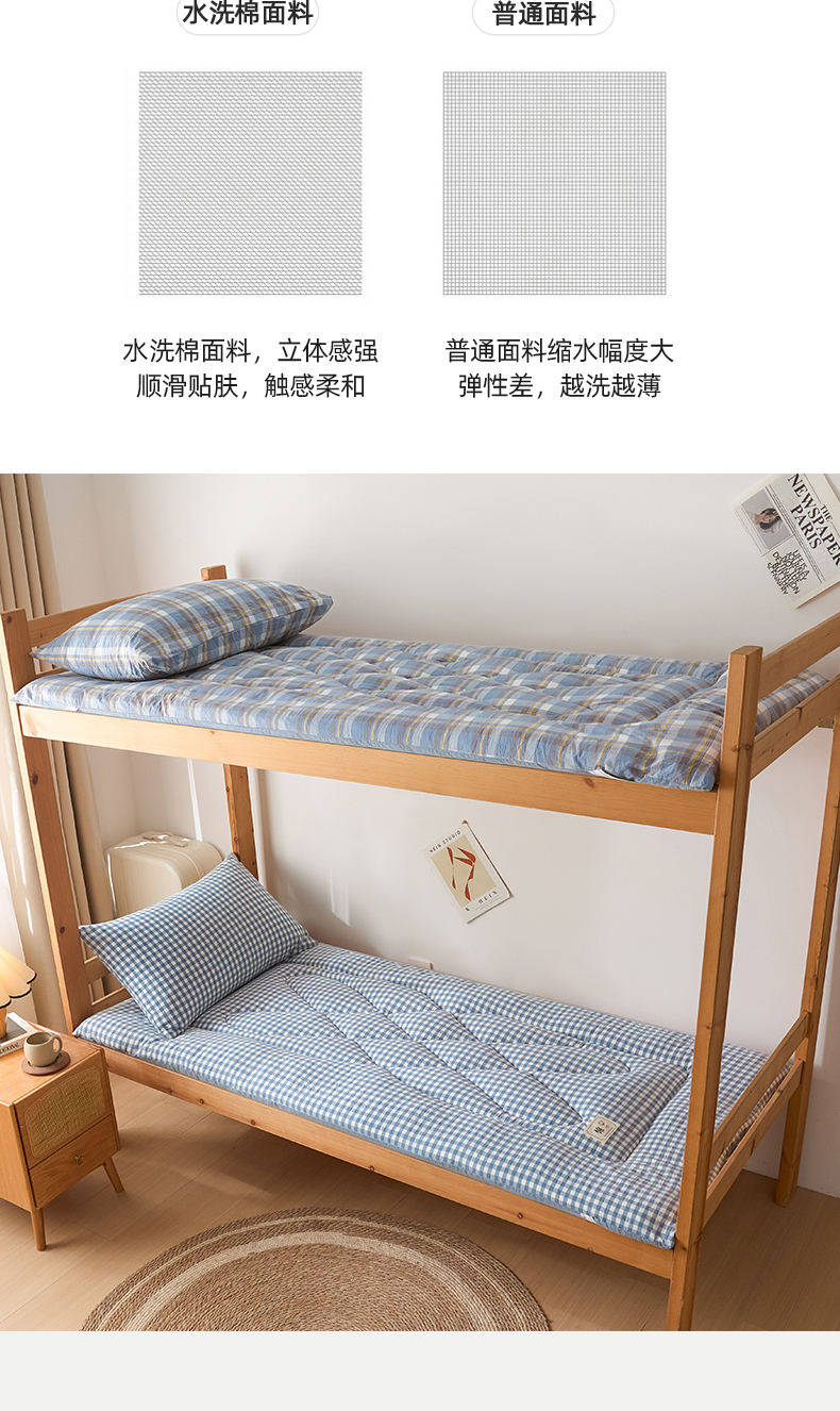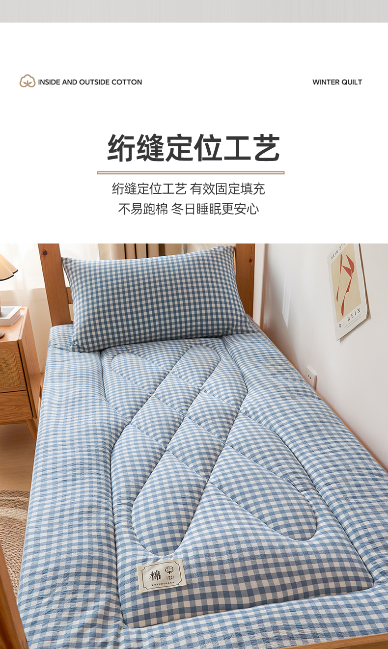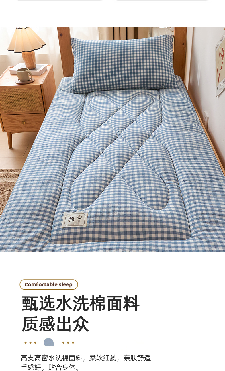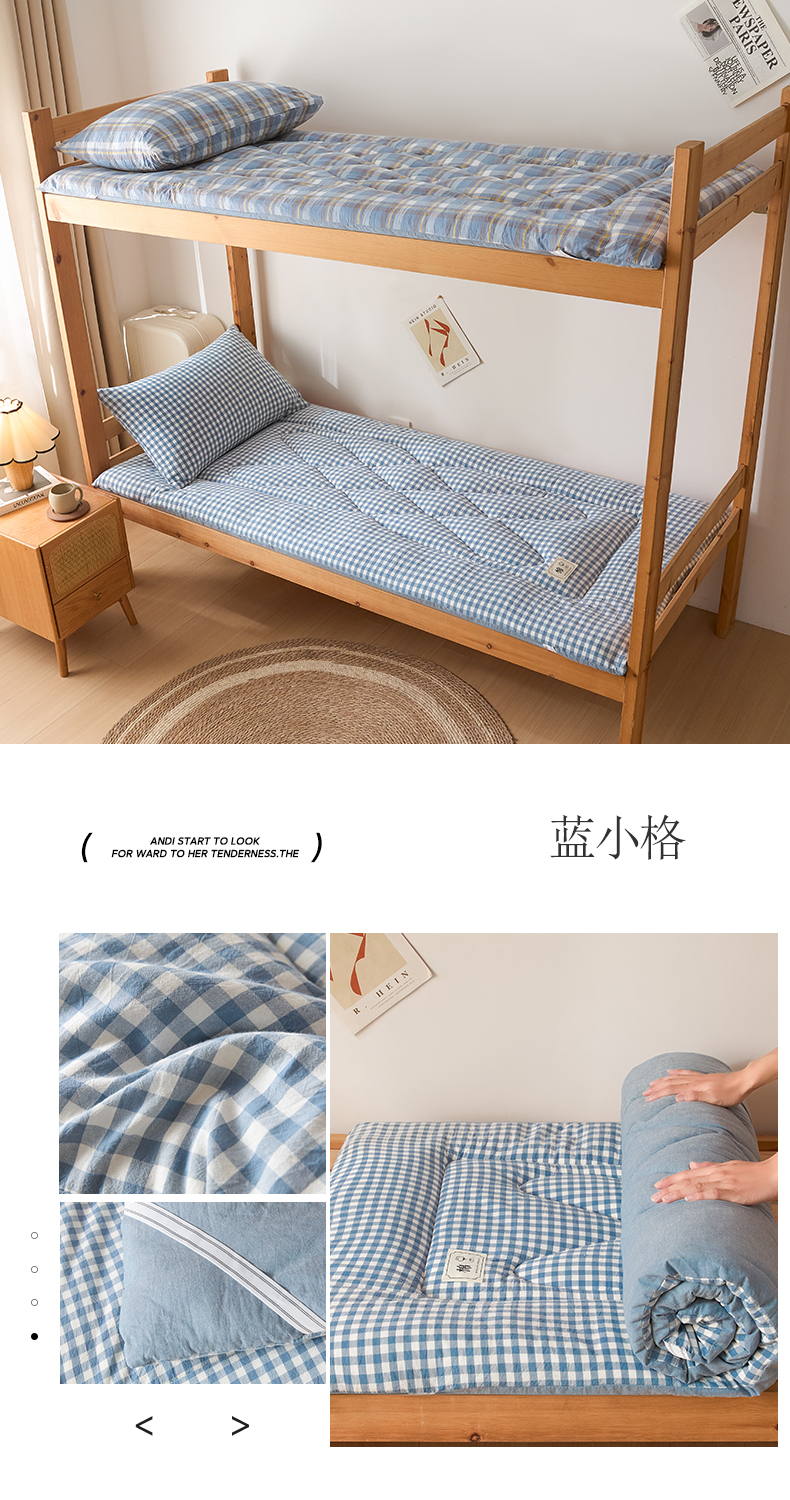 • 91家纺网 家纺一手货源 找家纺 爱屋及屋 2025款无印风学生棉花床垫 蓝小格