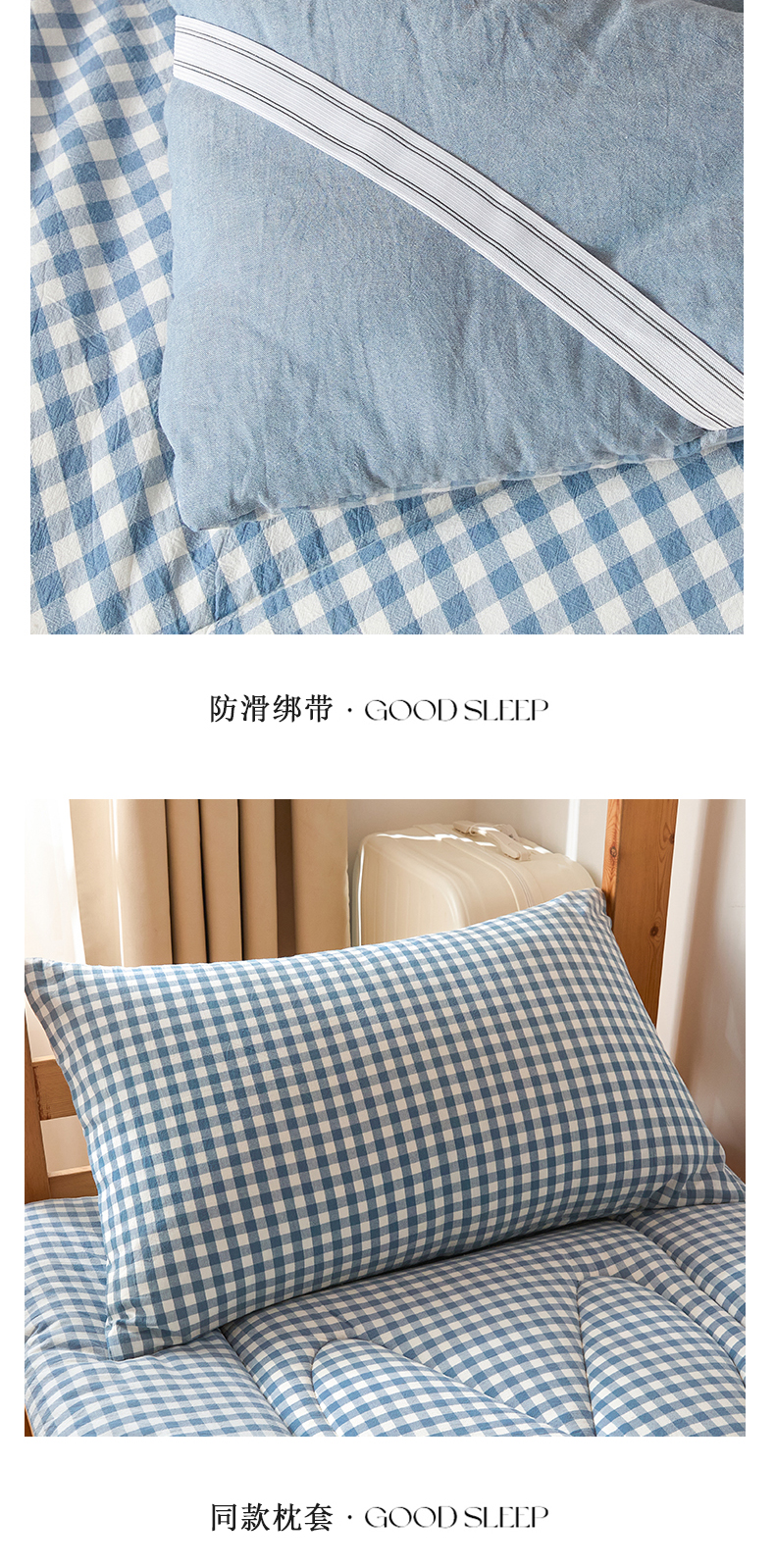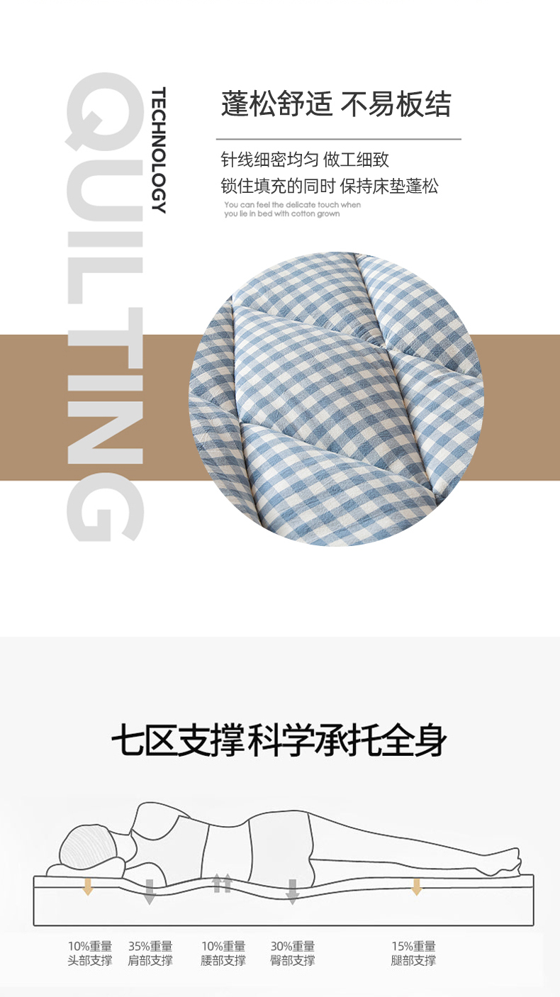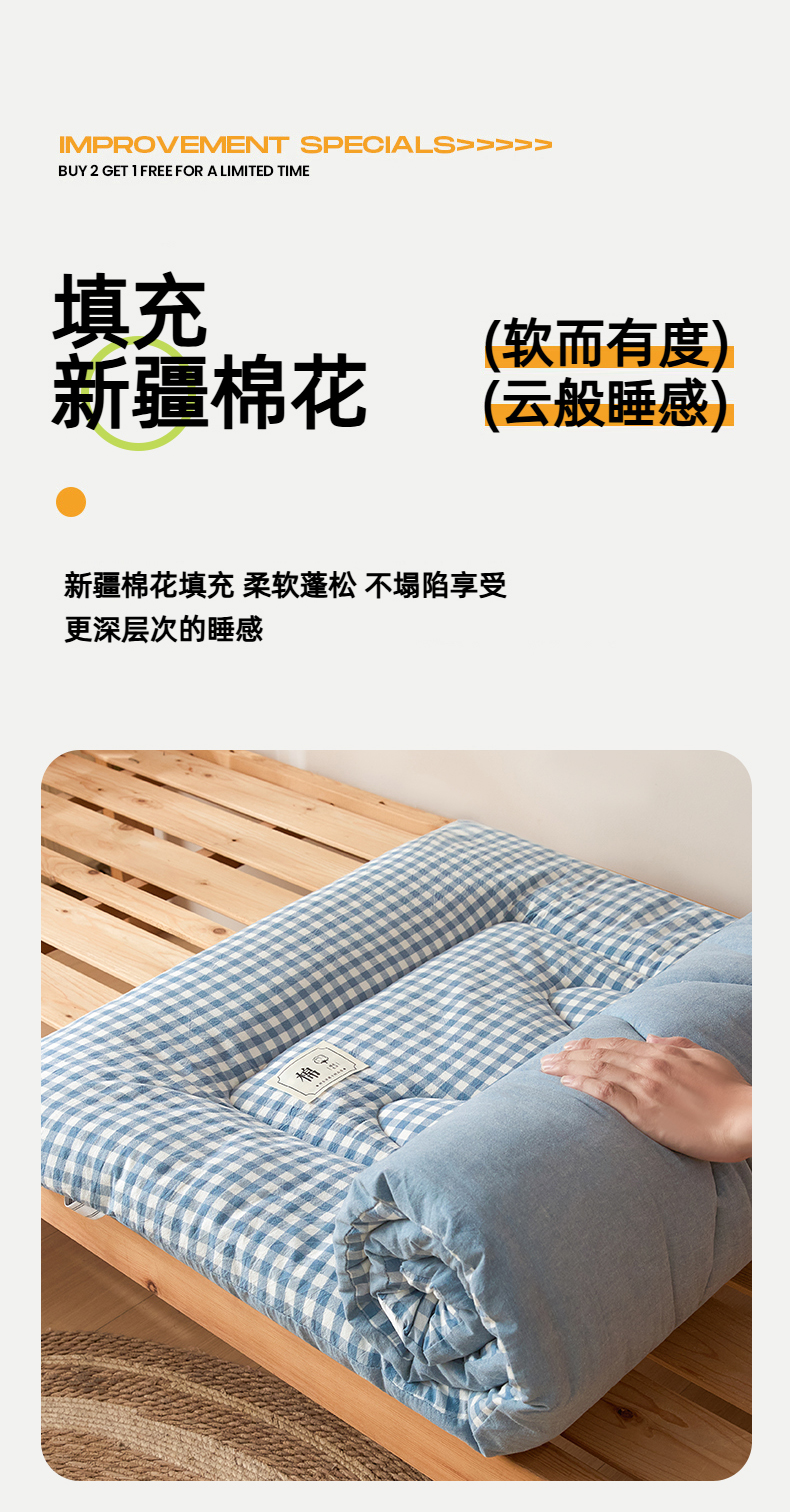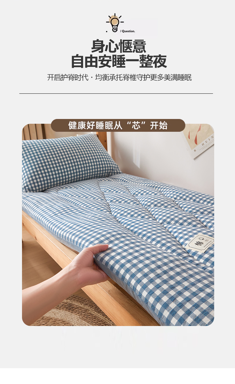 • 91家纺网 家纺一手货源 找家纺 爱屋及屋 2025款无印风学生棉花床垫 蓝小格