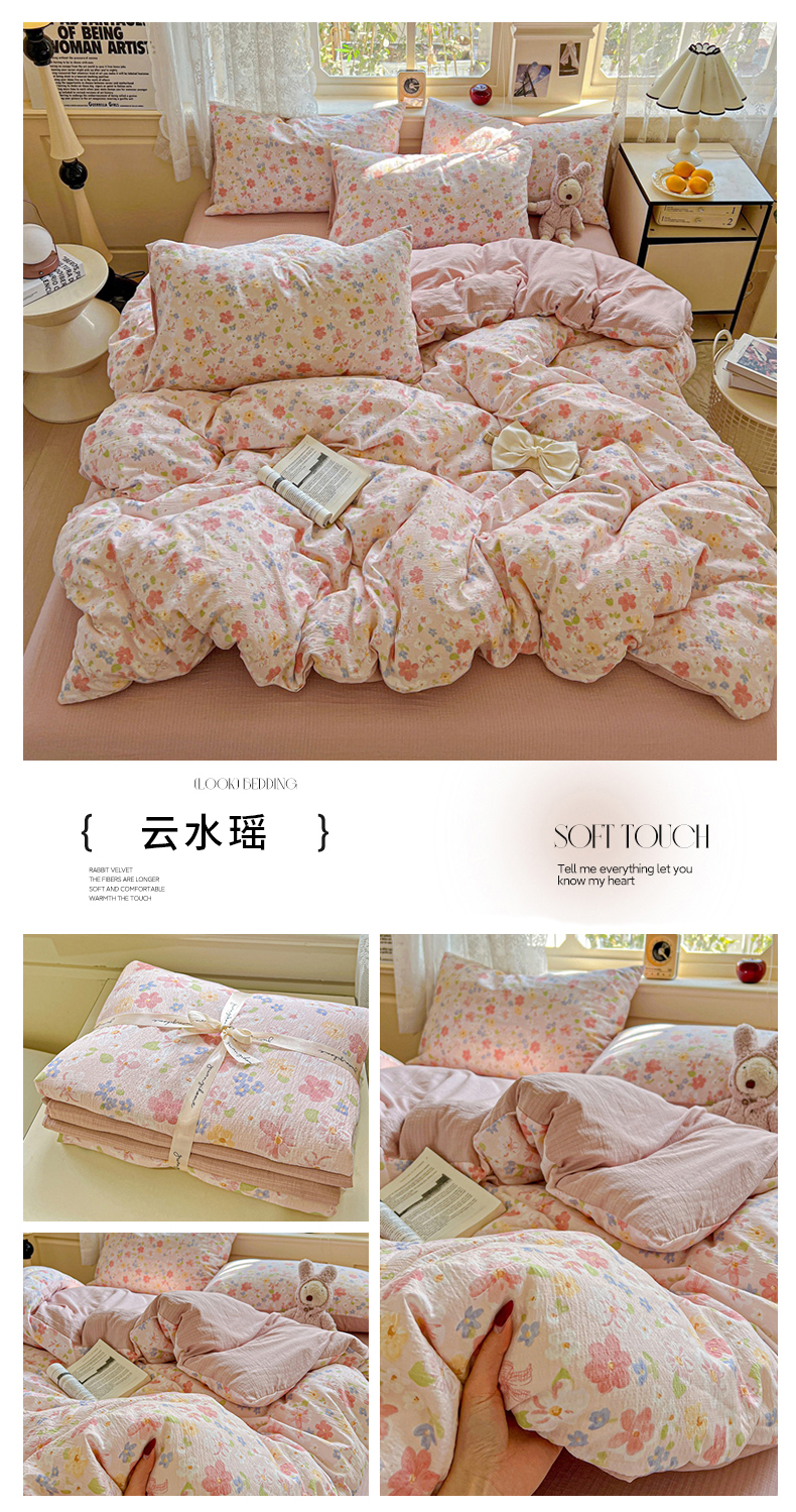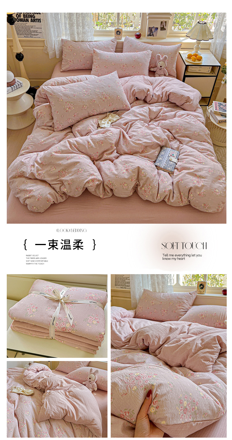 当前位置: 91家纺网 > 商品网购 > 床品套件 > 四件套 > 双层纱四件套 > 典曼家纺 2025新款云感皱皱双层纱四件套-简单款 波点小兔粉