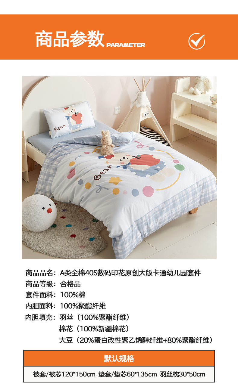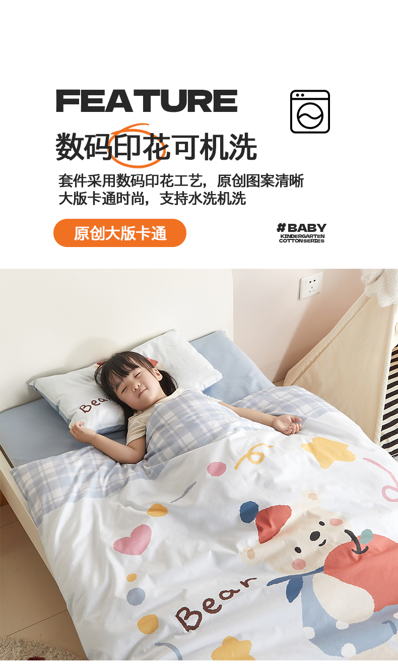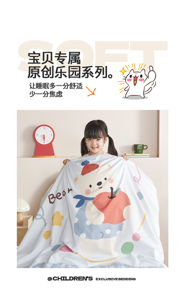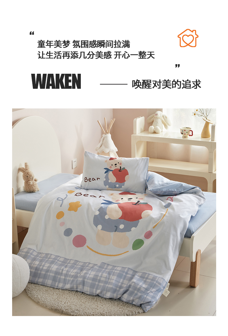 当前位置: 91家纺网 > 商品网购 > 床品套件 > 多件套 > 多件套 > 荷马之梦 2025新款学院系列—A类32s水洗棉贴布绣原创卡通拼接儿童幼儿园套件 苹果熊