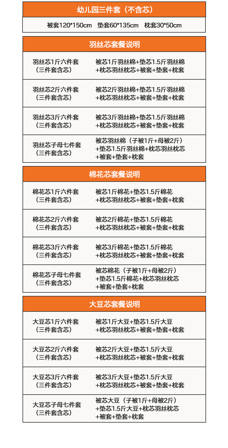 棉花芯3斤六件套(三件套含芯) | ¥165.00 |