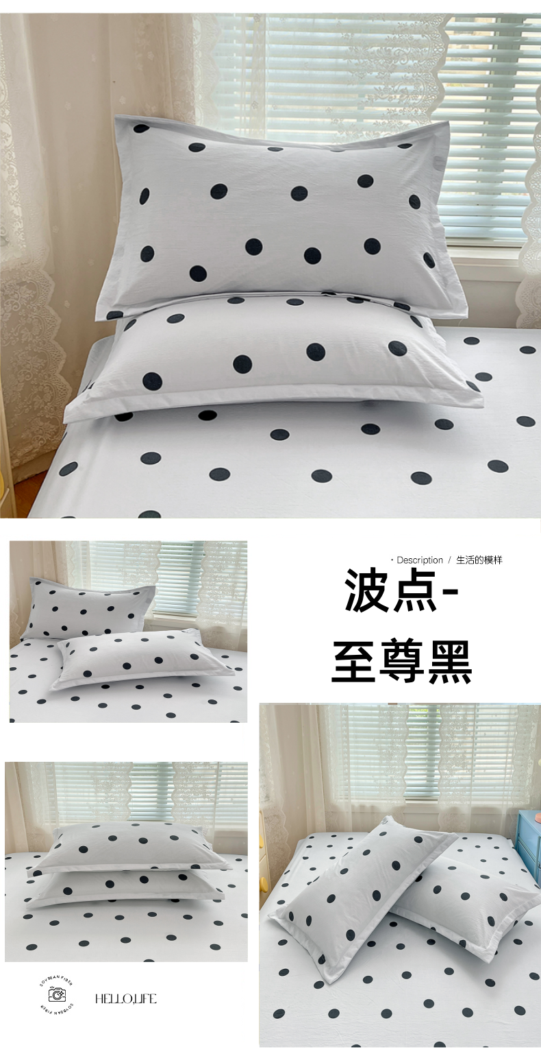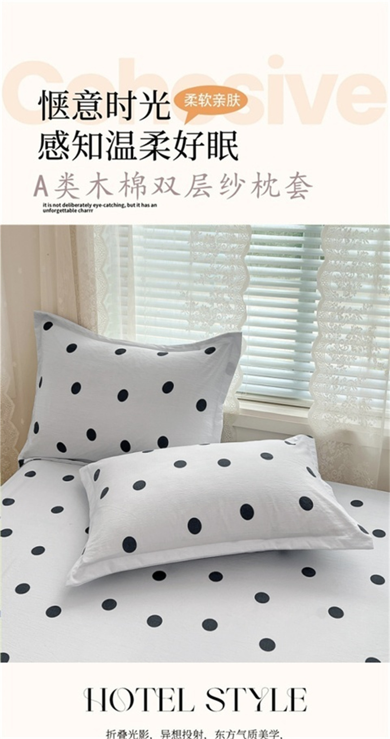 商品名称:圣比熊 2025新款双层纱枕套宿舍学生单只枕芯套枕头内胆套一对装-缤纷波点 波点-至尊黑