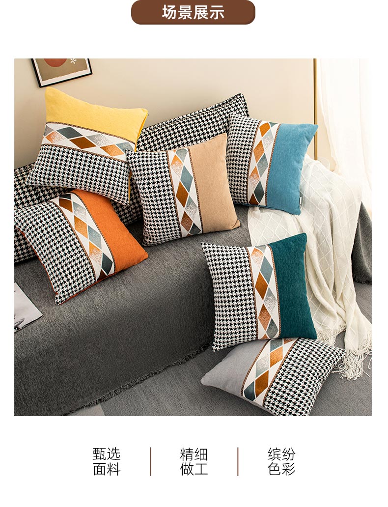 商品名称:新奇异 2025新款仿超柔雪尼尔提花千鸟格方块抱枕 组合图仅供展示