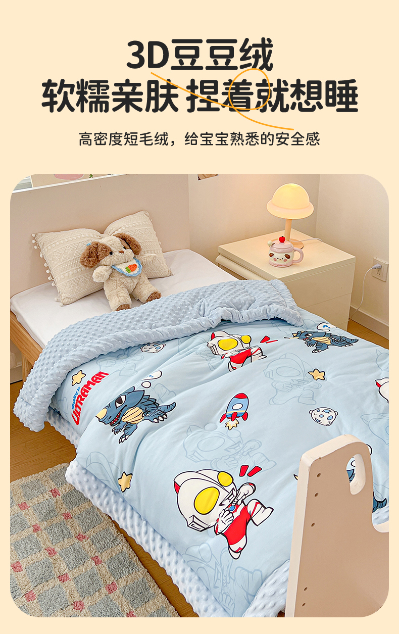 • 91家纺网 家纺一手货源 找家纺 名兮家居 2025秋冬新款母婴级经典奥特曼三丽鸥豆豆被 被子被芯 奥特勇士