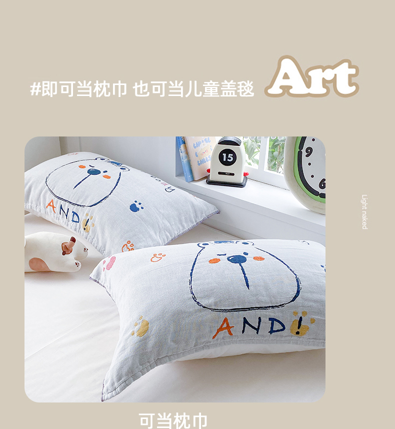 (总)美宜家 2026新款全棉细纱加厚萌系治愈风枕巾,条纹蘑菇一只,伙伴一只,萌萌兔一只,绅士熊一只,童趣一只,小暖狗一只,条纹蘑菇一对,伙伴一对,萌萌兔一对,绅士熊一对,童趣一对,小暖狗一对