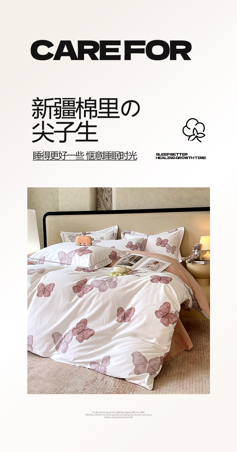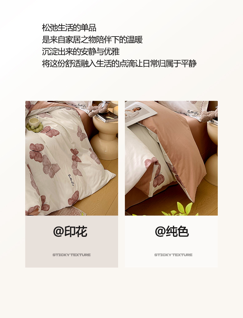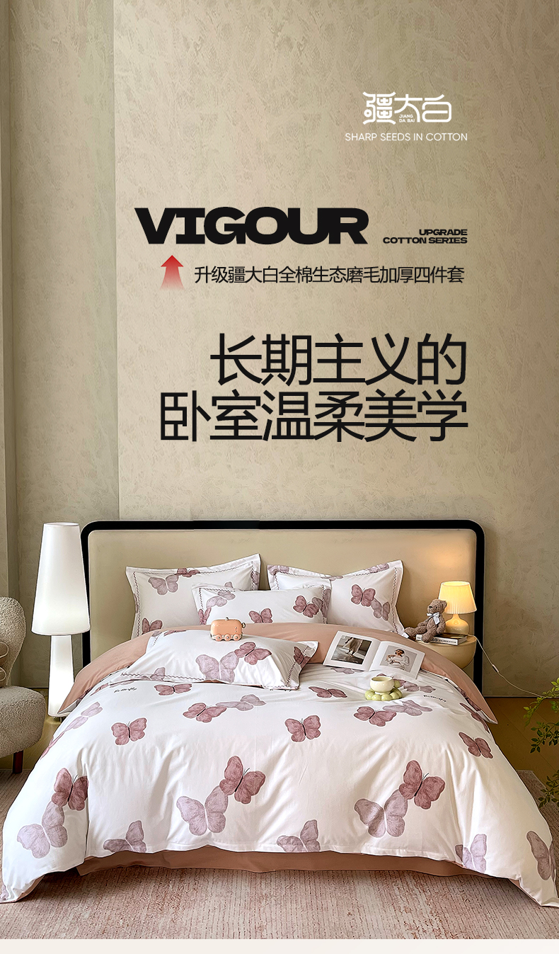 慕希家纺 2025新款疆大白全棉纯棉加厚生态磨毛四件套 伊伴-豆沙