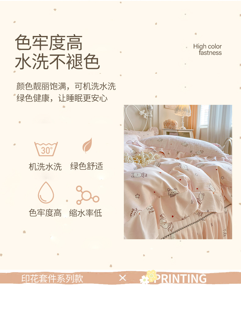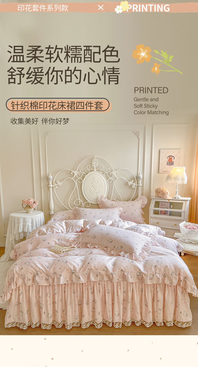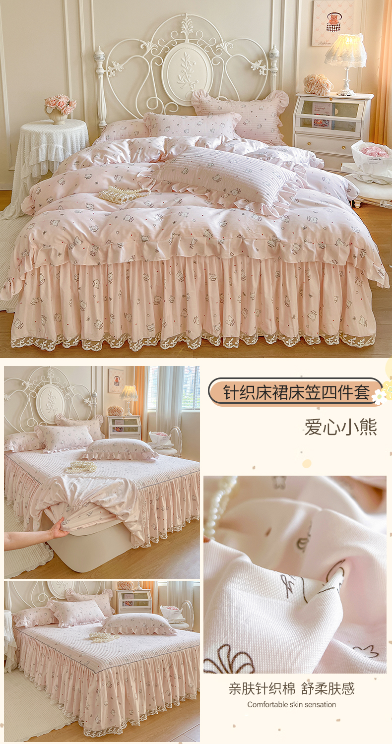 商品名称:网红馆(ck家纺)2025新款针织印花床裙四件套 爱心小熊