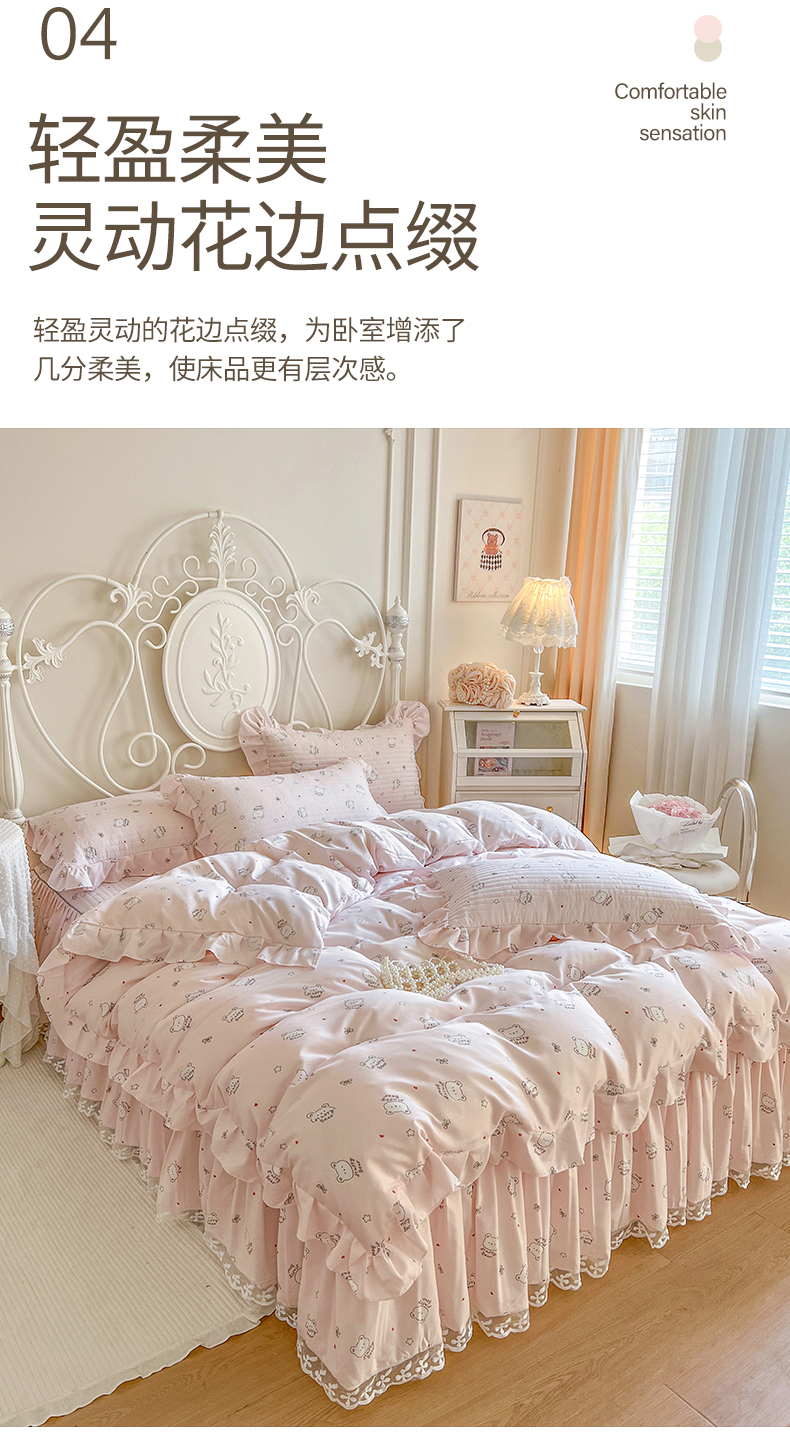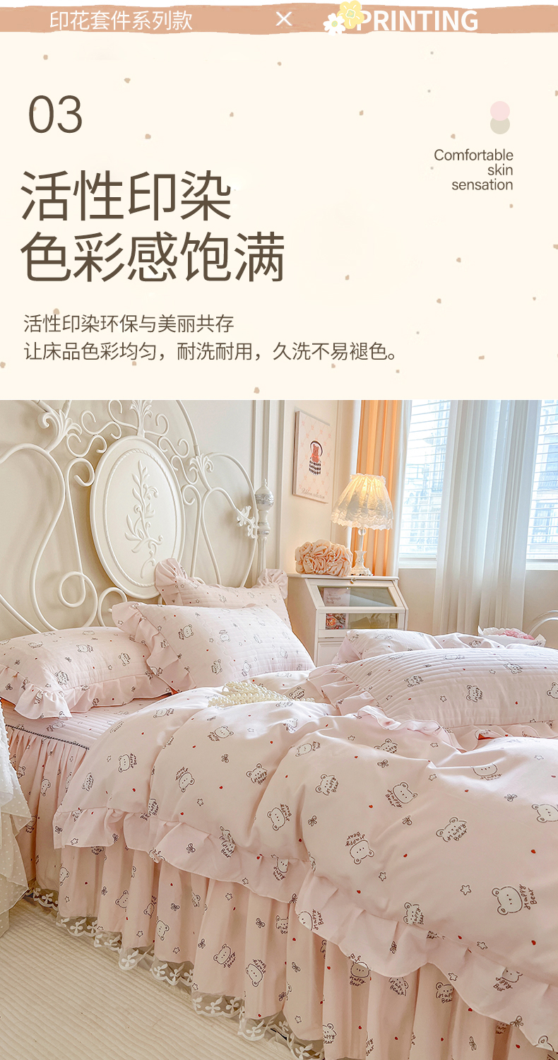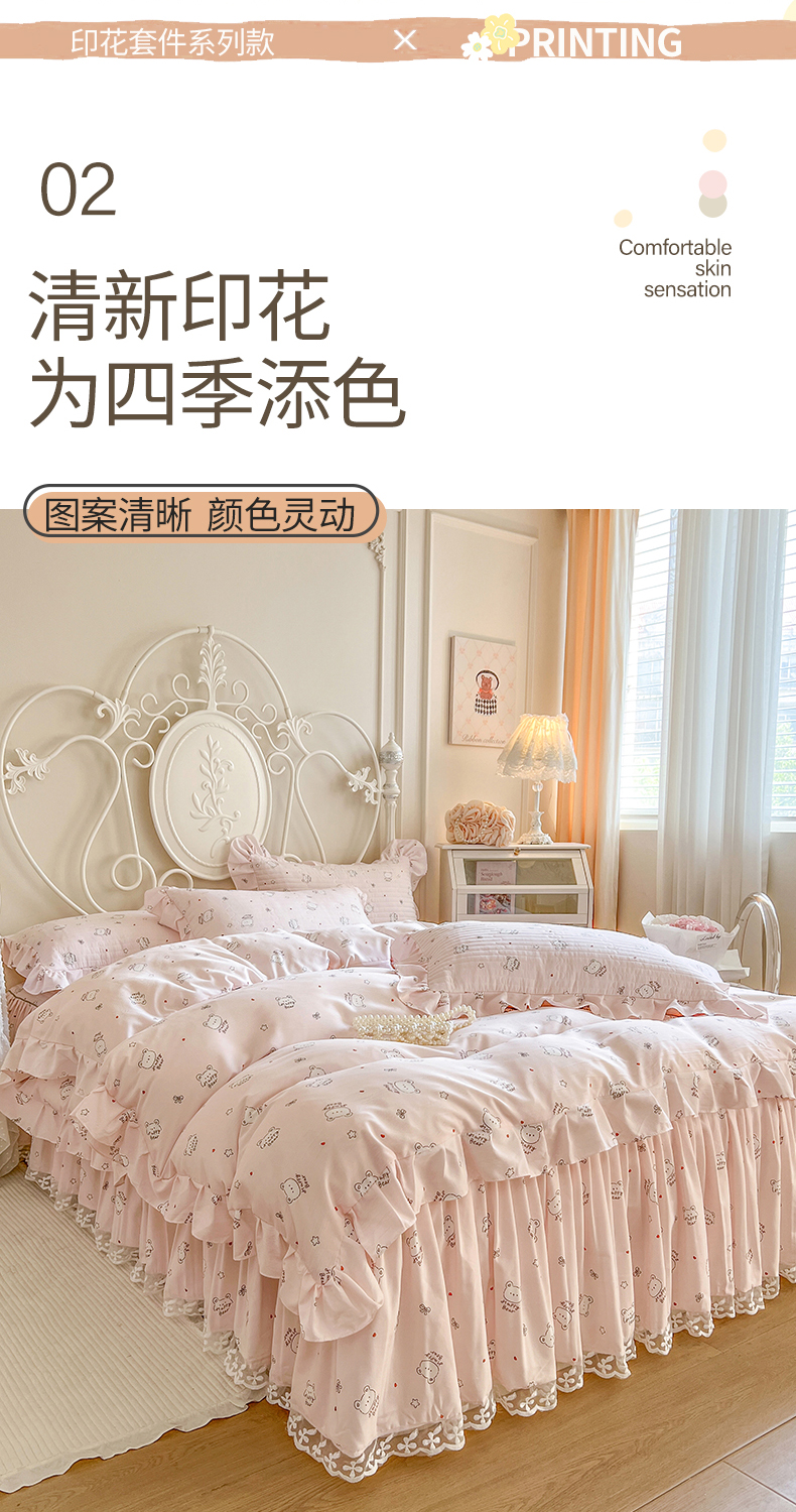 商品名称:网红馆(ck家纺)2025新款针织印花床裙四件套 爱心小熊