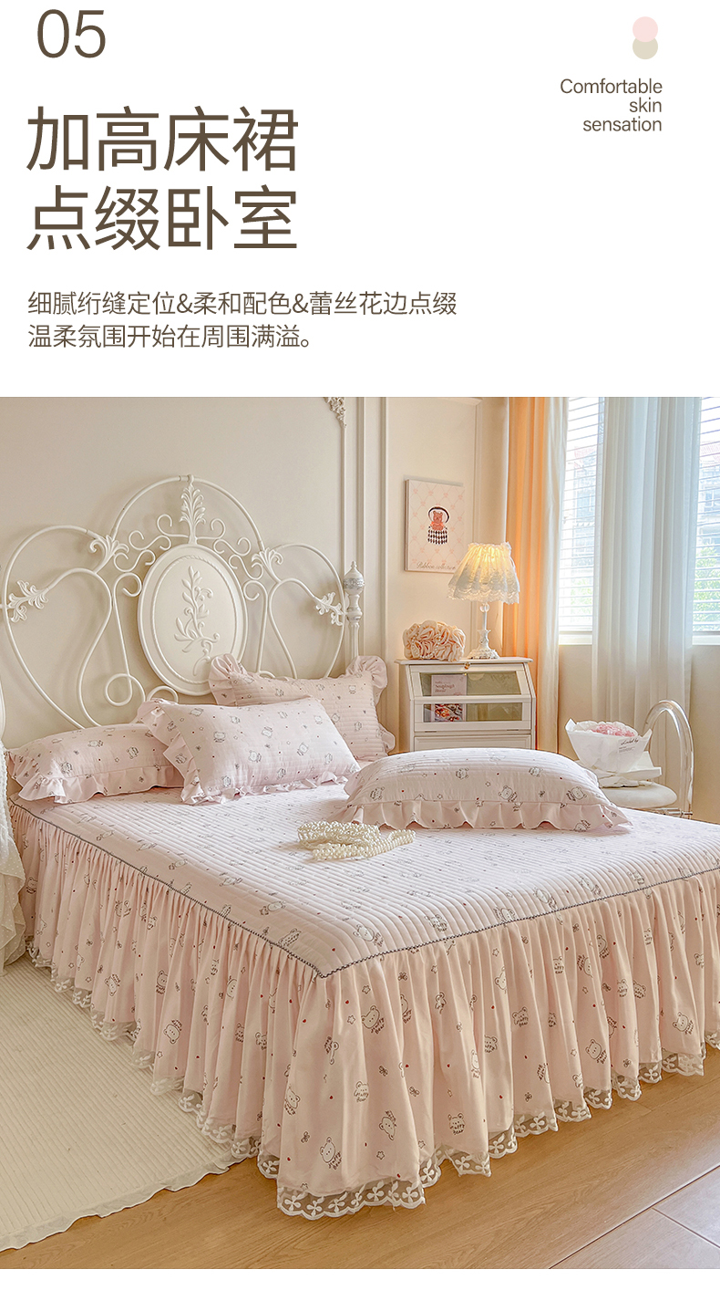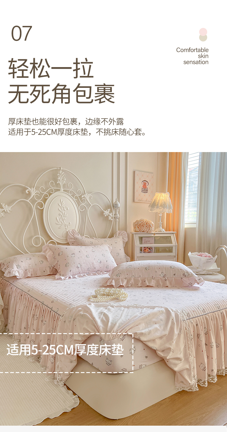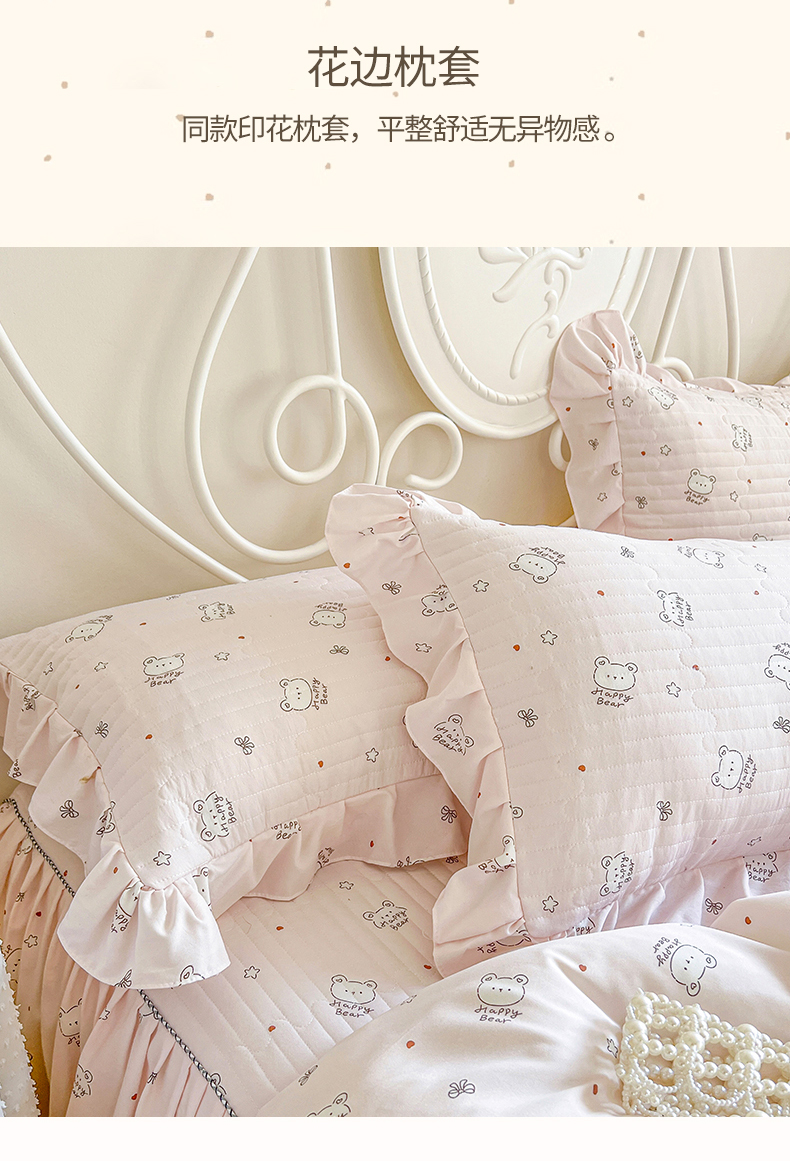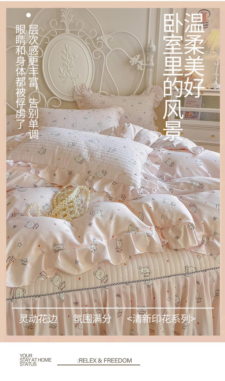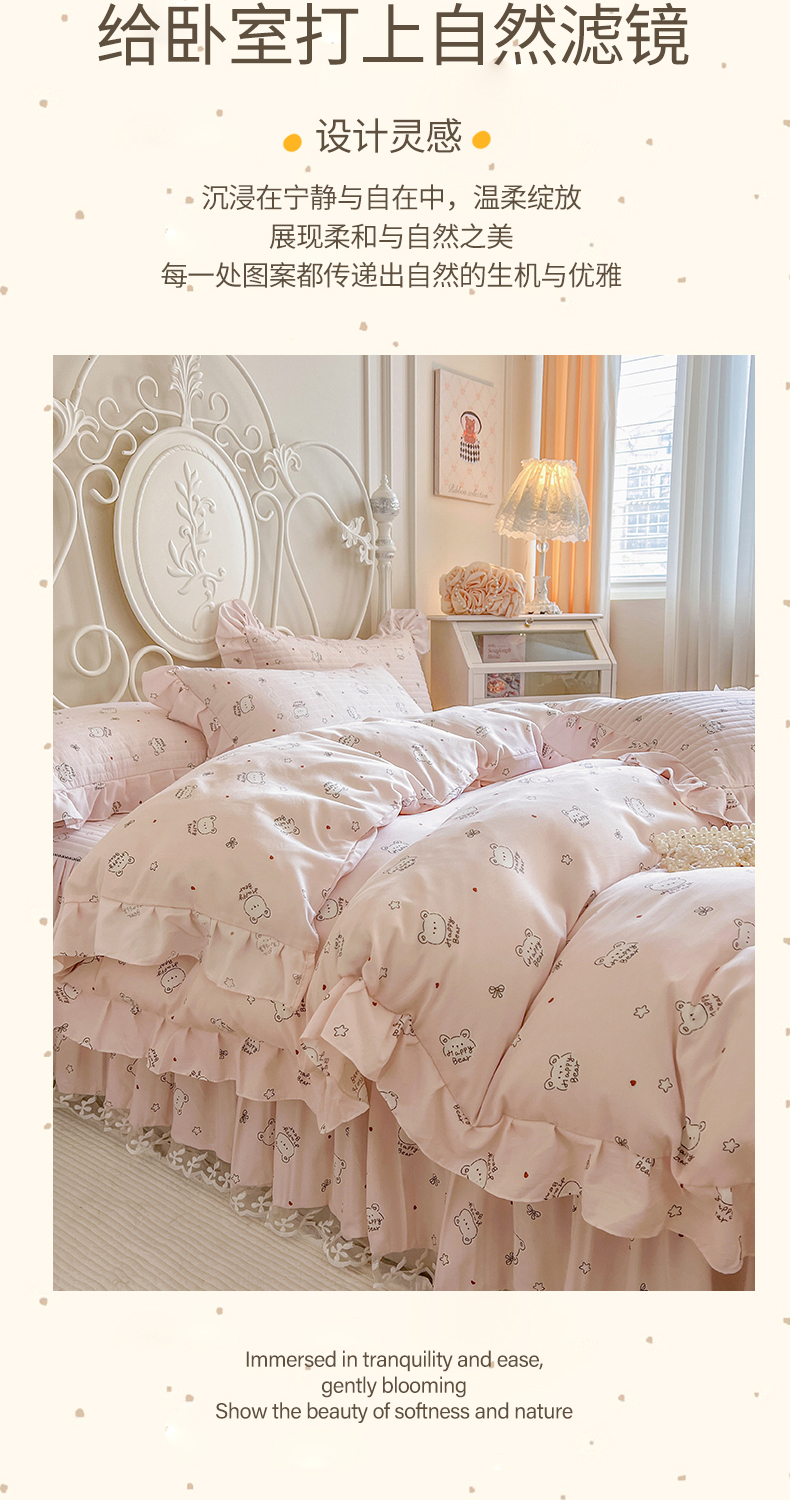 网红馆(ck家纺)2025新款针织印花床裙四件套 爱心小熊