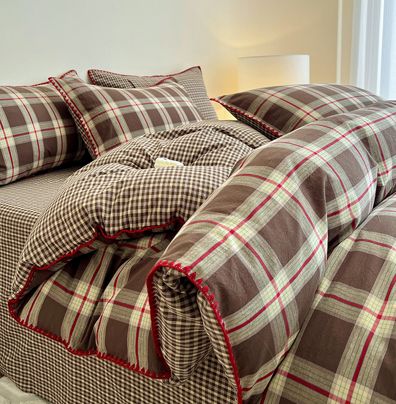 当前位置: 91家纺网 > 商品网购 > 床品套件 > 四件套 > 水洗棉四件套 > 静家居-简约原创家纺 2025新款A类色织水洗棉贝壳针系列四件套 北欧-咖格