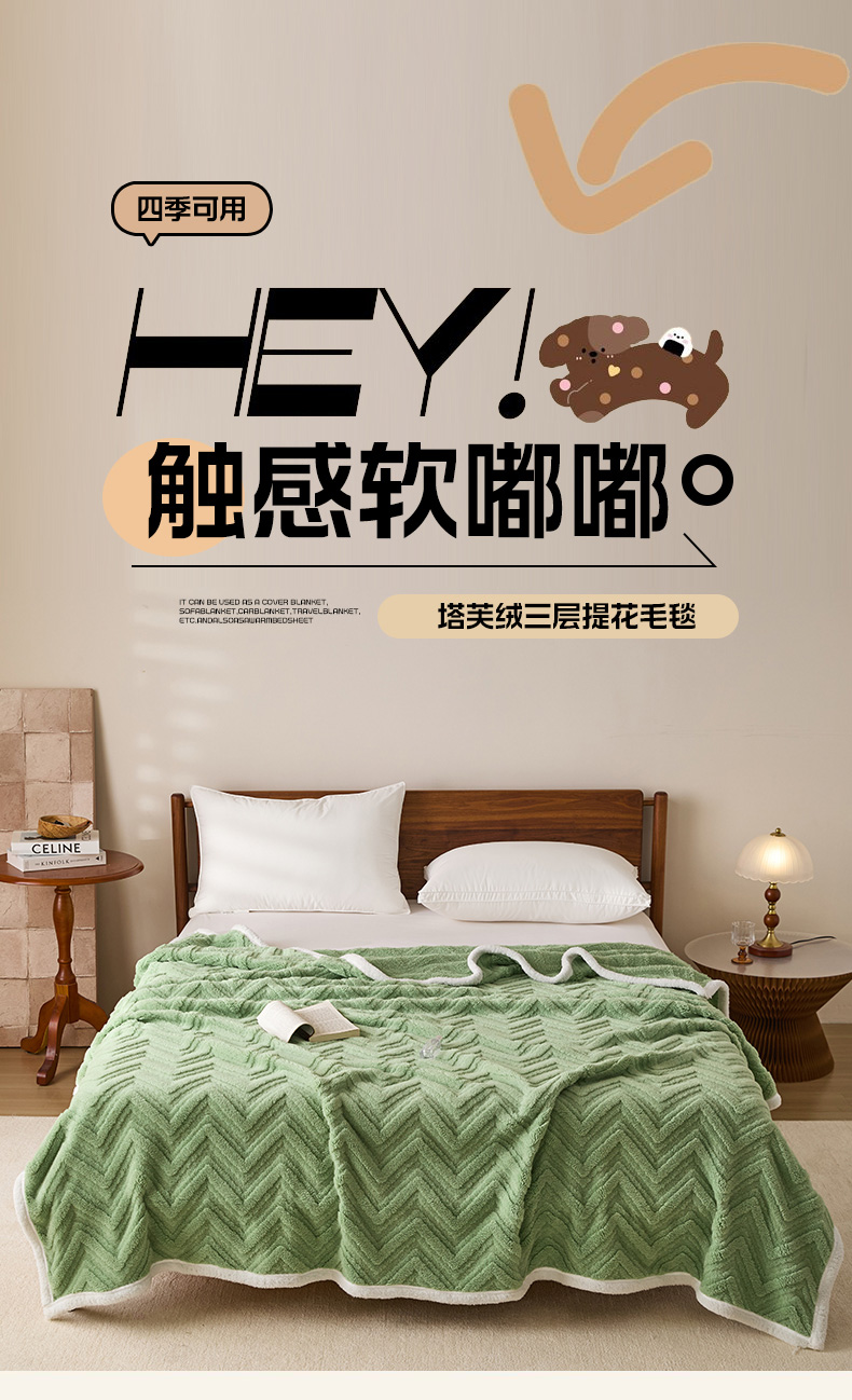梵心家纺 2025新款塔芙绒三层提花毛毯舒棉绒剪花双面毯子盖毯320g高克重毛毯-直播跨境电商 组合图仅供展示