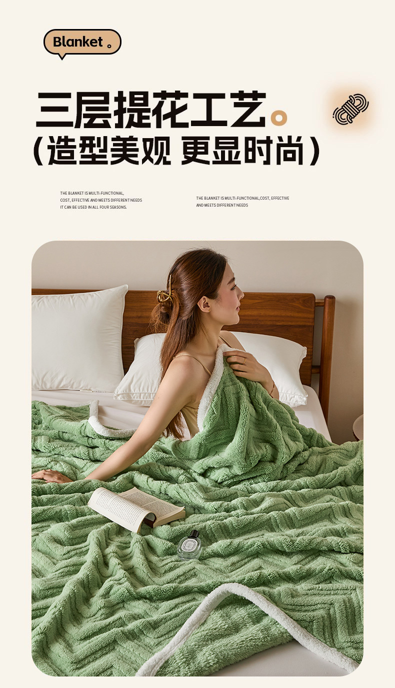 商品名称:梵心家纺 2025新款塔芙绒三层提花毛毯舒棉绒剪花双面毯子盖毯320g高克重毛毯-直播跨境电商 组合图仅供展示