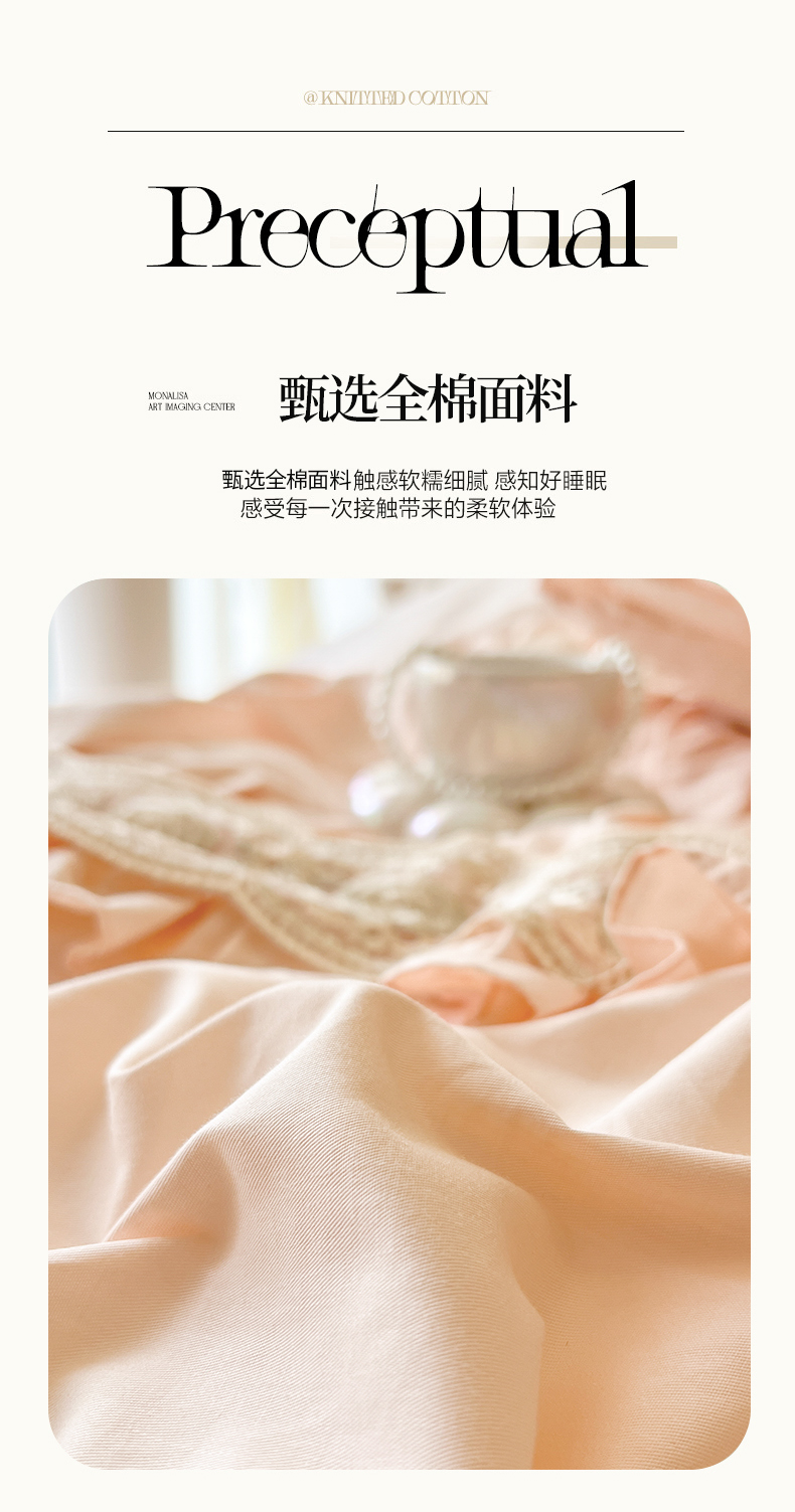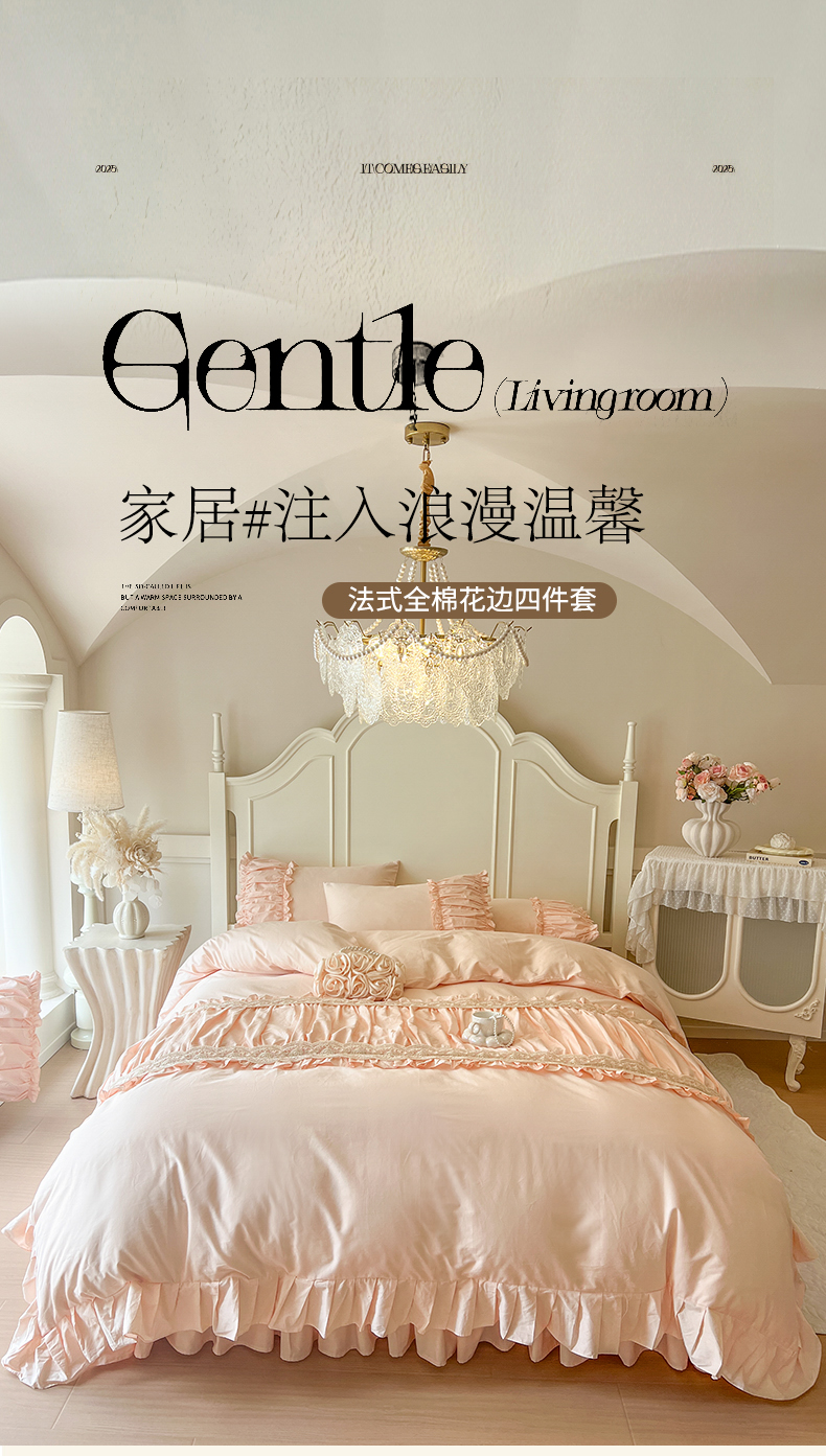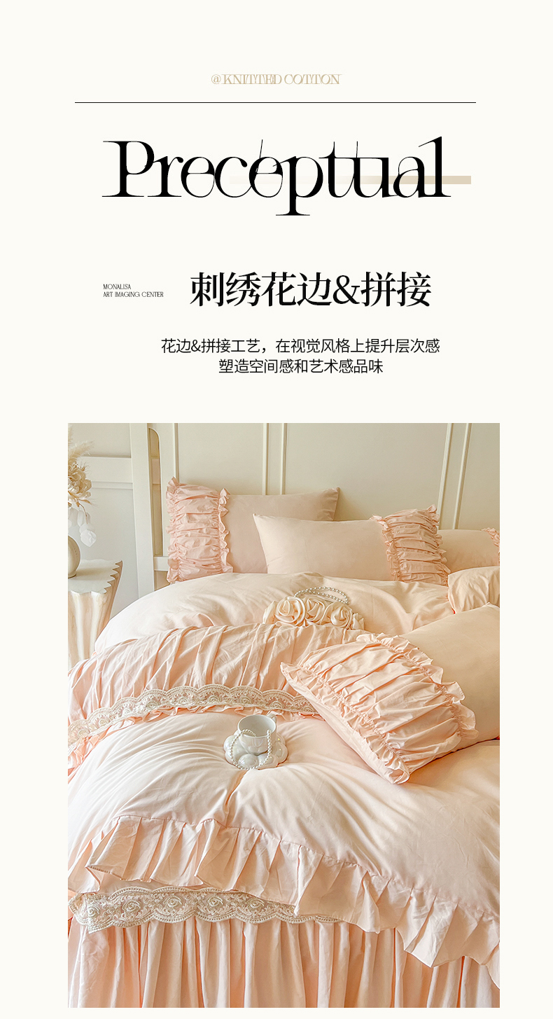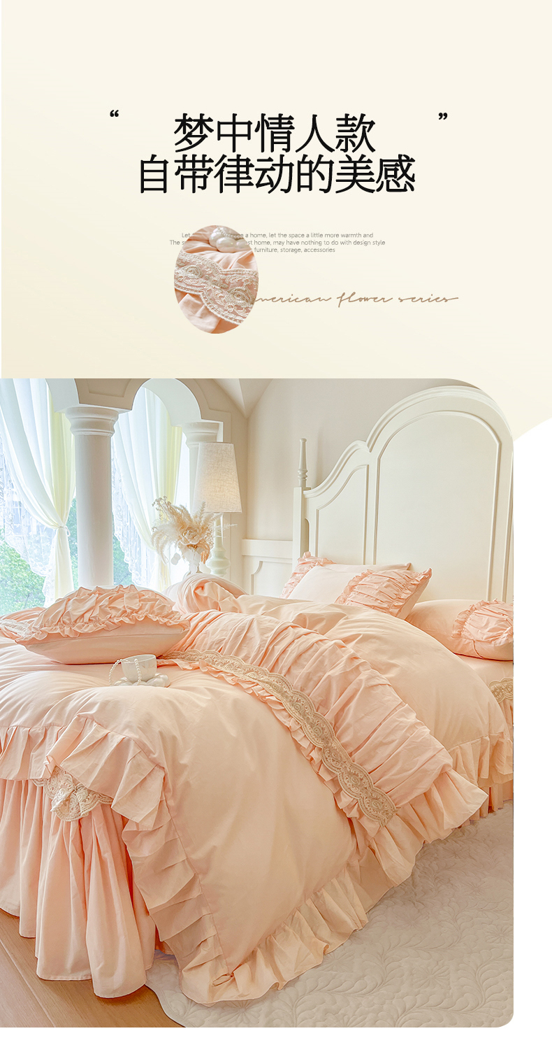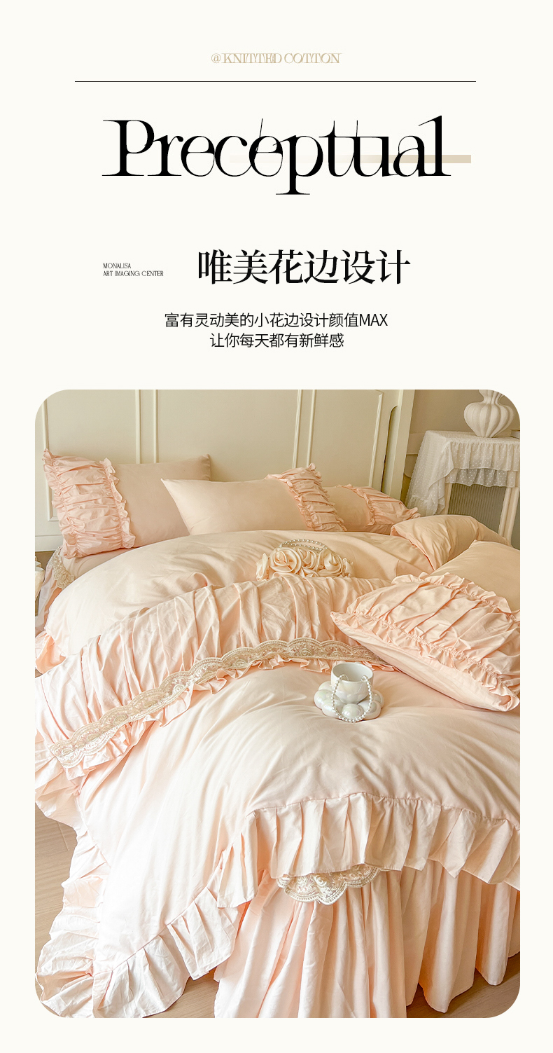 当前位置: 91家纺网 > 商品网购 > 床品套件 > 四件套 > 全棉普通四件套 > 瑞宝 2025新款法式全棉纯棉花边床裙款四件套-维密 维密 蜜粉