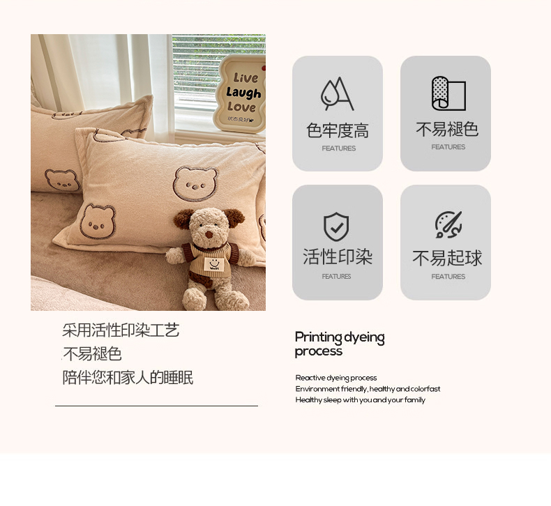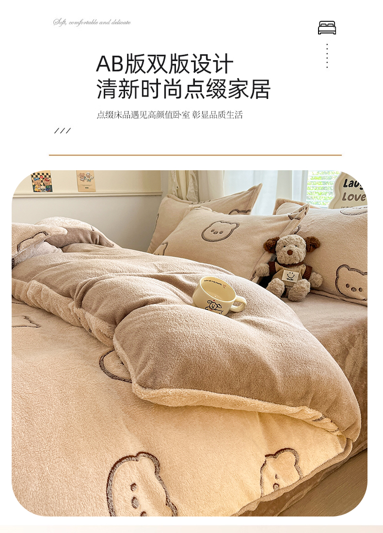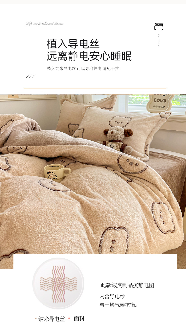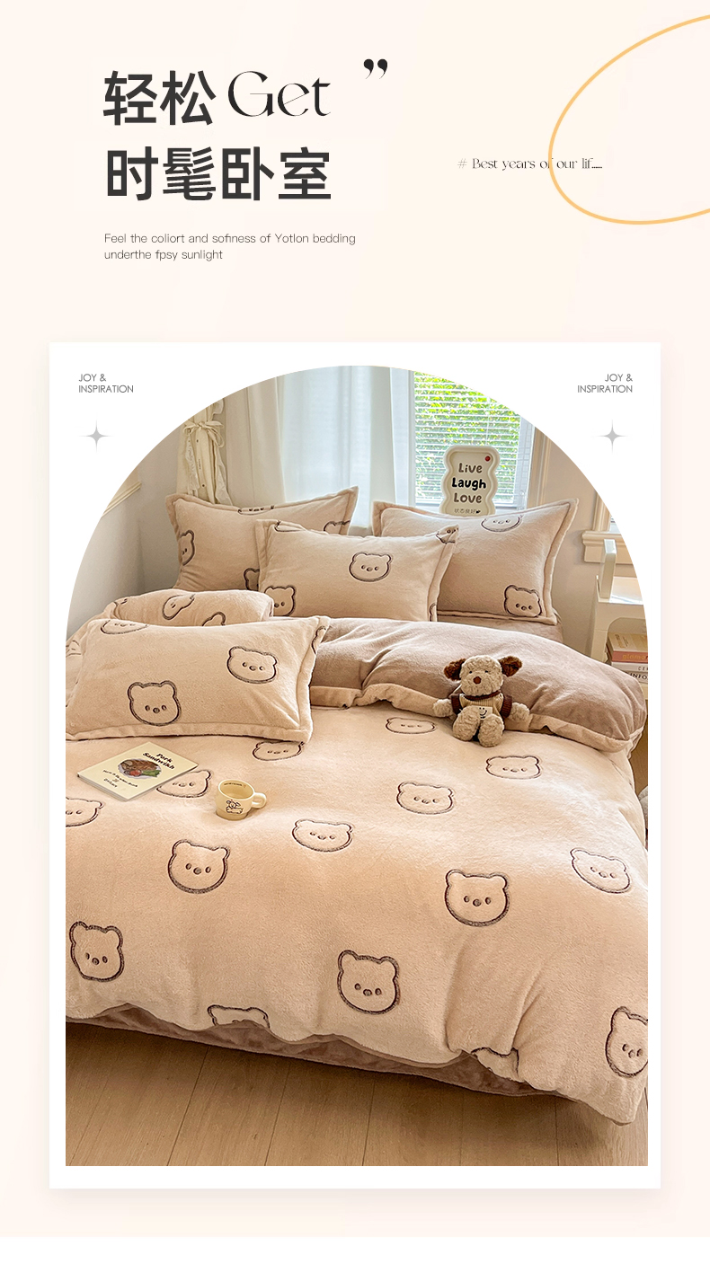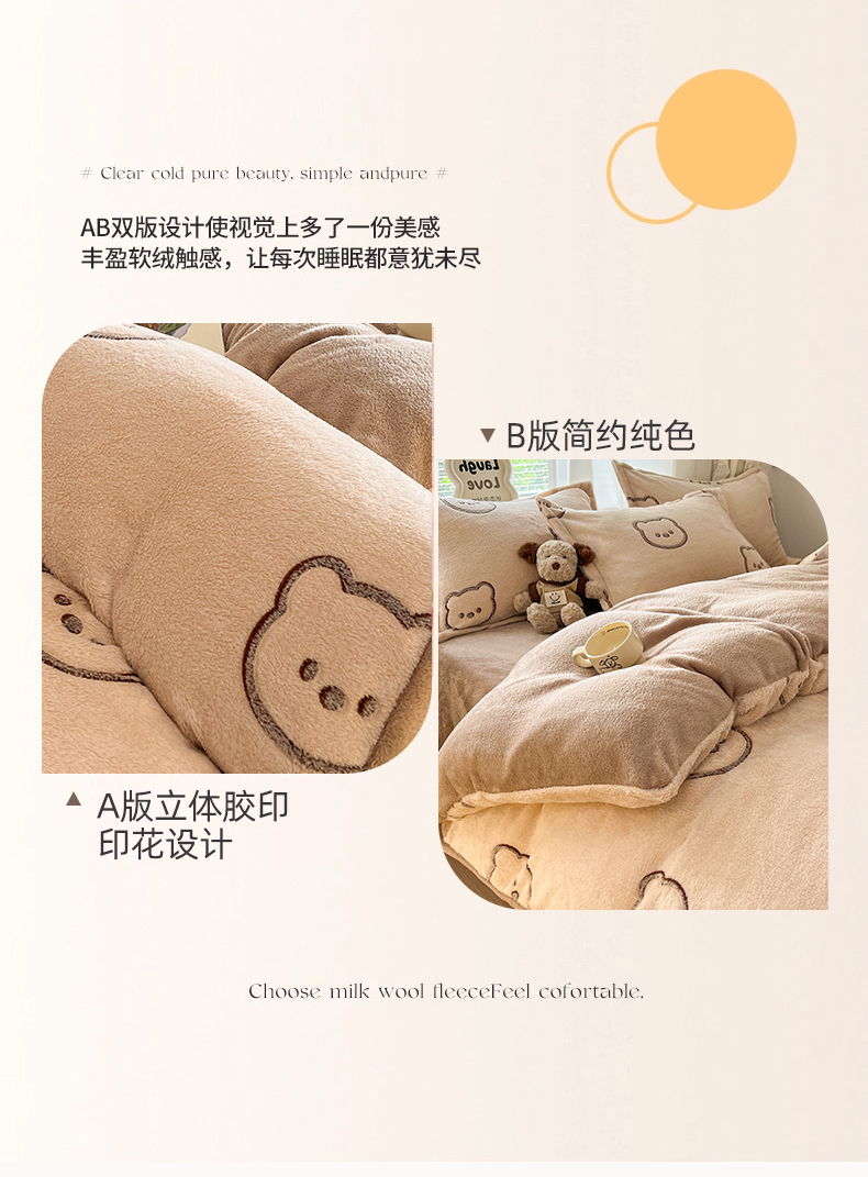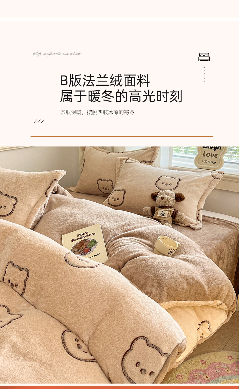 当前位置: 91家纺网 > 商品网购 > 床品套件 > 四件套 > 法莱绒四件套 > 川悦生活2025新款立体雪花绒印花大床四件套系列二场景二 曲奇小熊