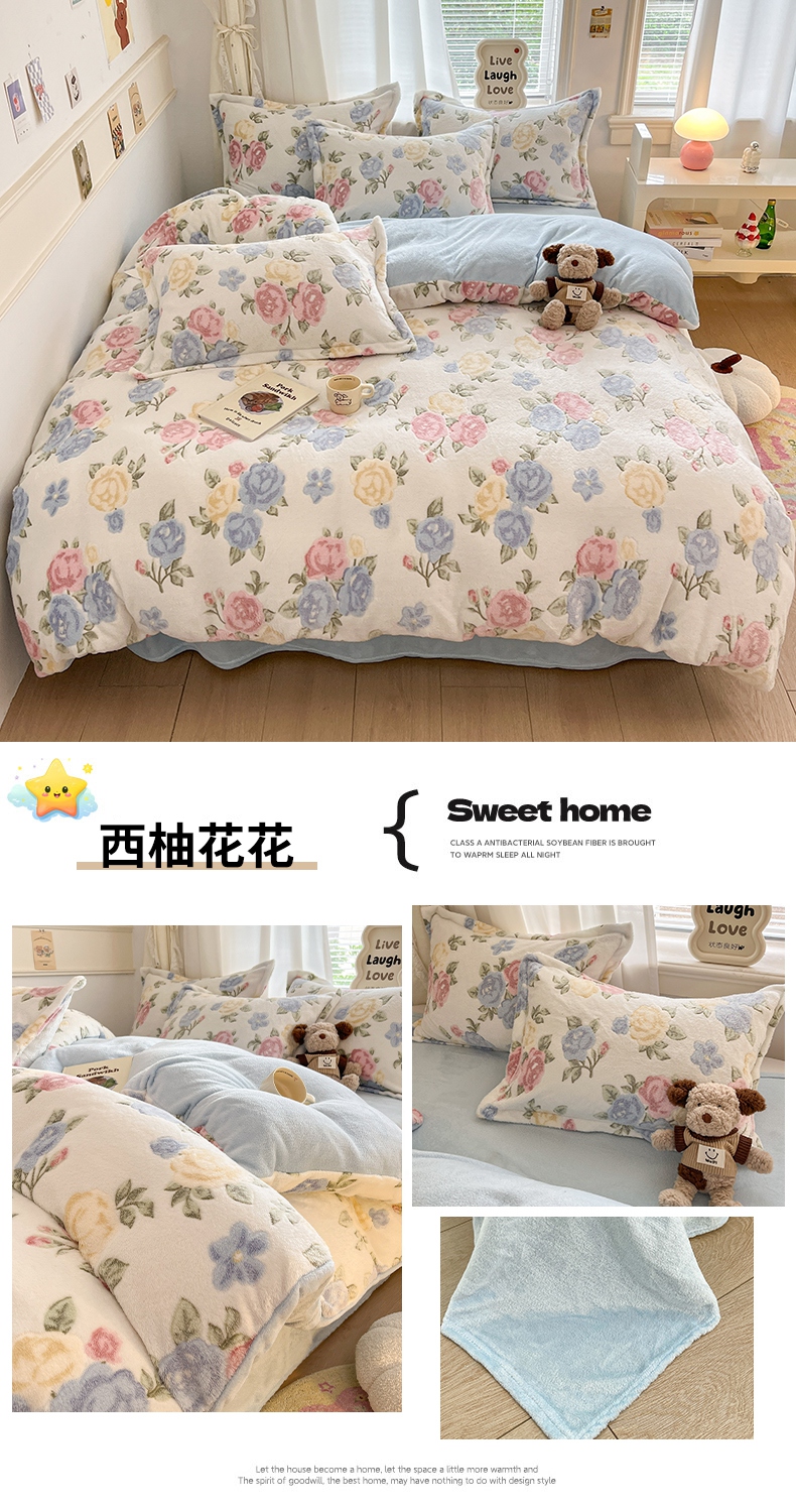 当前位置: 91家纺网 > 商品网购 > 床品套件 > 四件套 > 法莱绒四件套 > 川悦生活2025新款立体雪花绒印花大床四件套系列二场景二 樱桃小兔