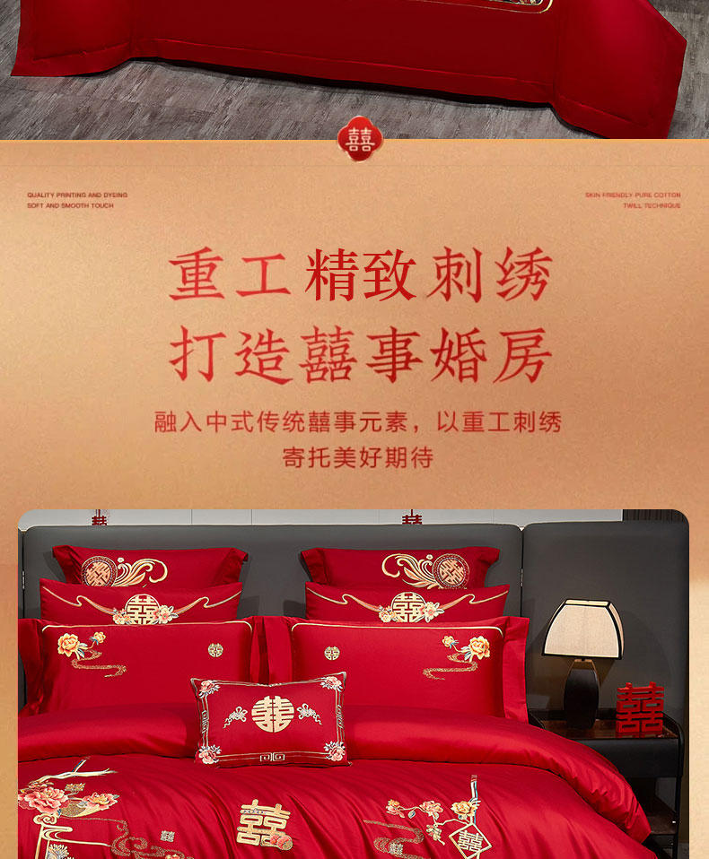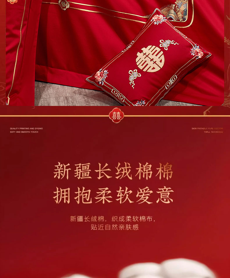 当前位置: 91家纺网 > 商品网购 > 床品套件 > 四件套 > 婚庆四件套 > 蒂爵 2025新款婚庆长绒棉时尚小红书爆款刺绣婚庆四件套多件套-无提花款 花似锦