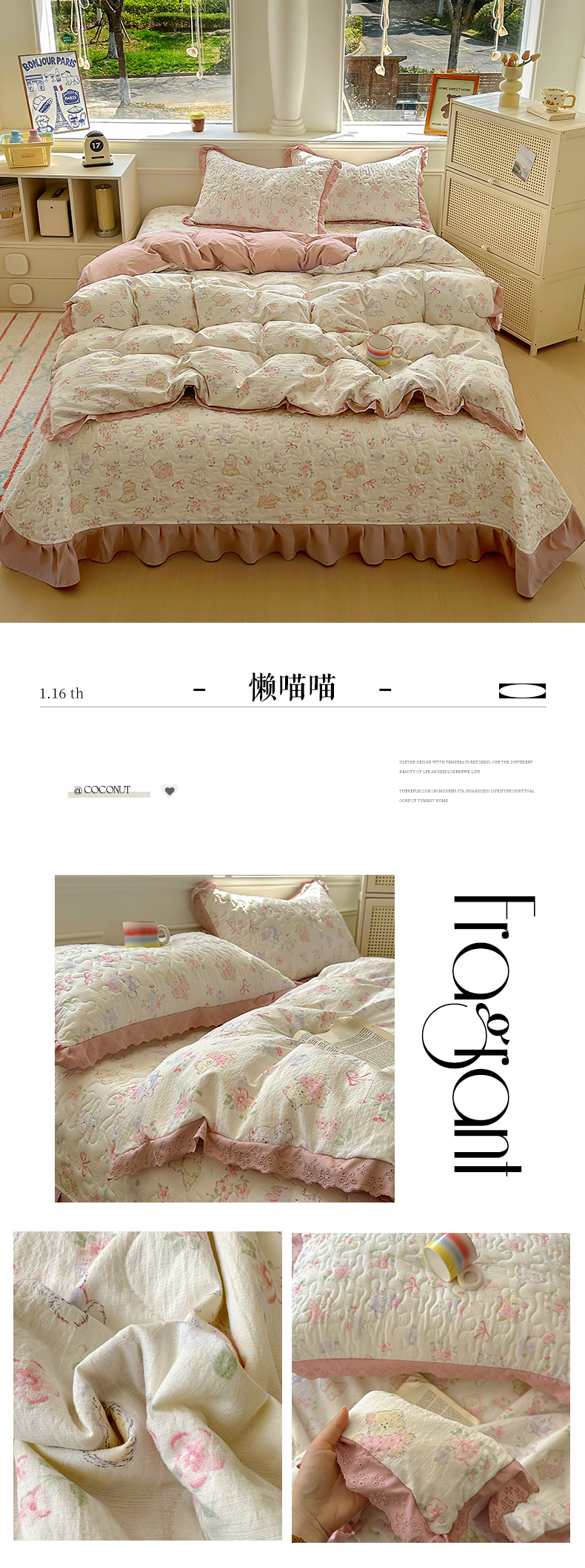 商品名称:美梦家纺 2025新款皱皱纱花边夹棉床盖四件套 知夏
