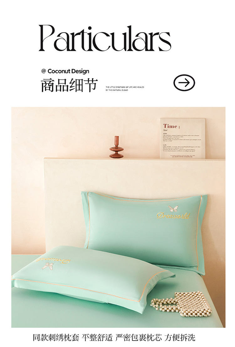 • 91家纺网 家纺一手货源 找家纺 纽维斯 2025新款水洗棉云朵棉刺绣宽边绣花磨毛四件套-小晴天系列 小晴天-水绿
