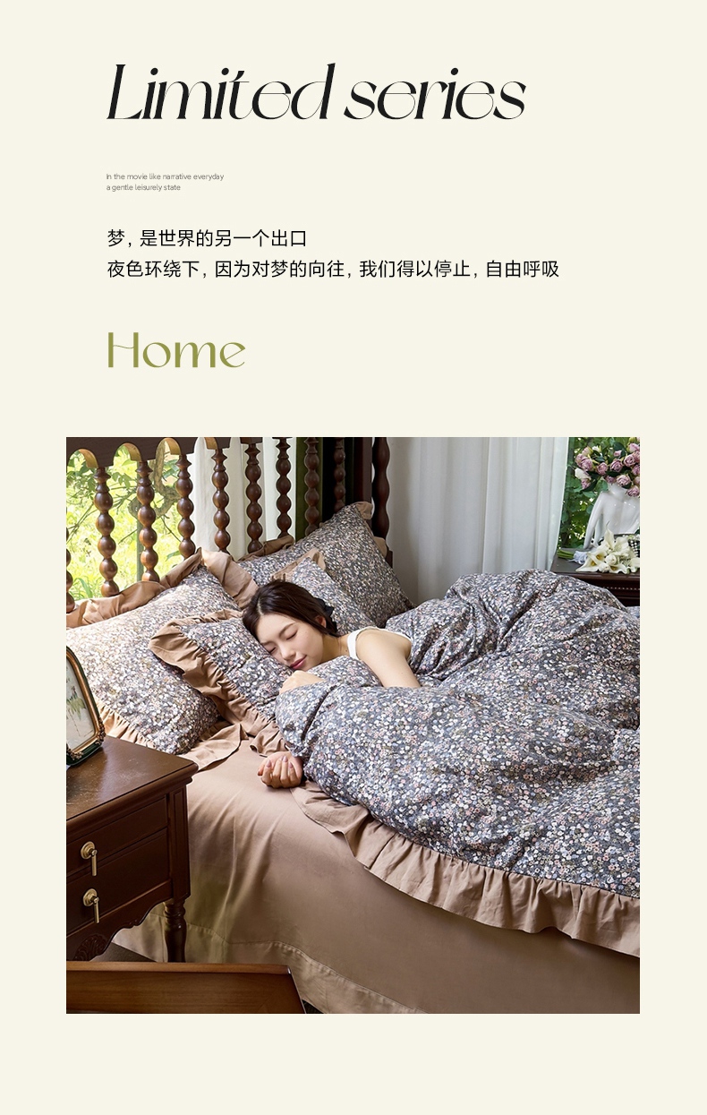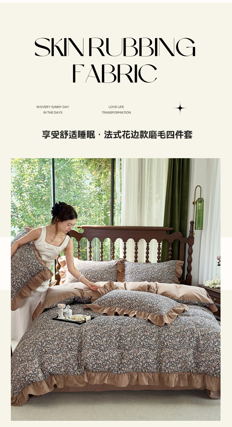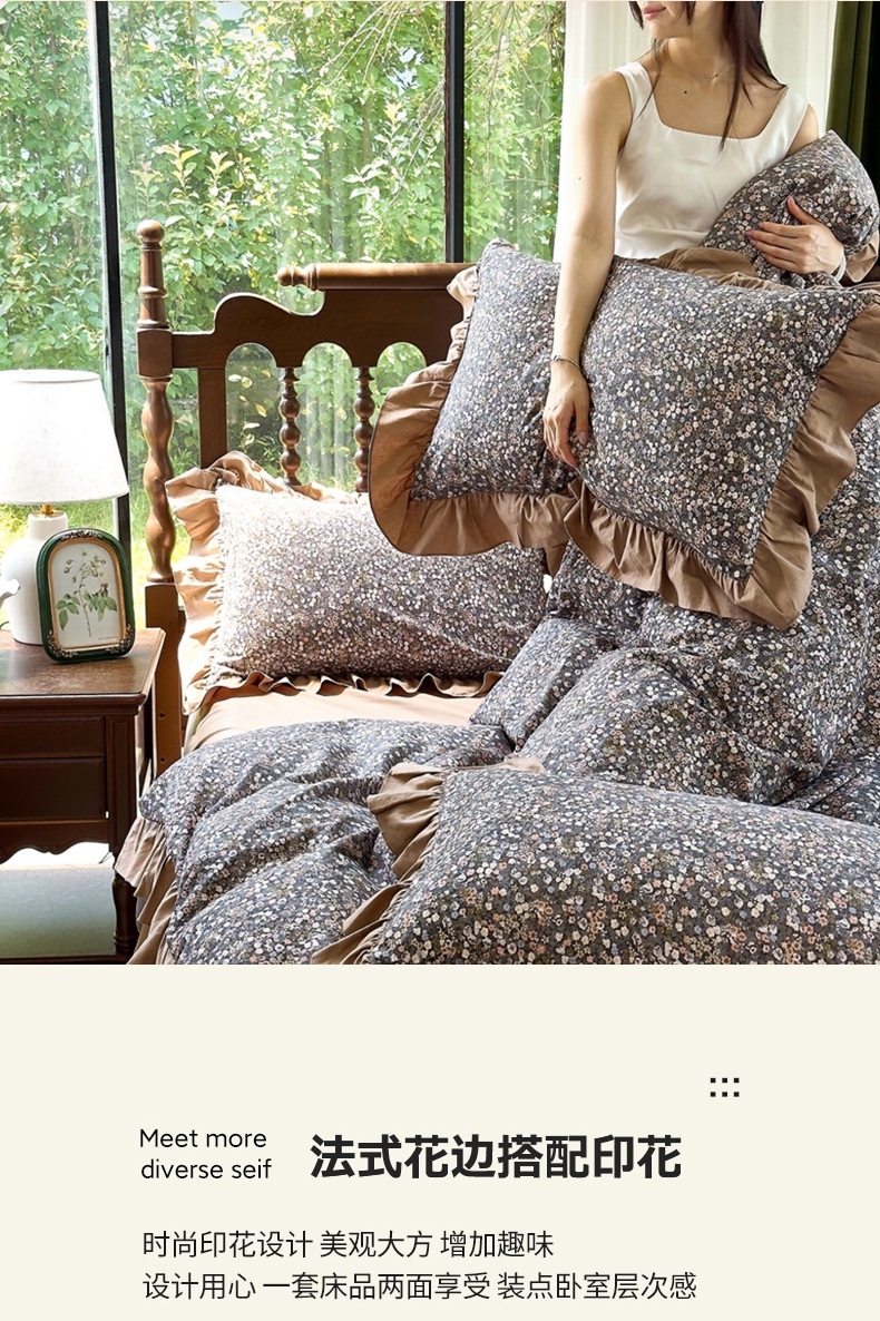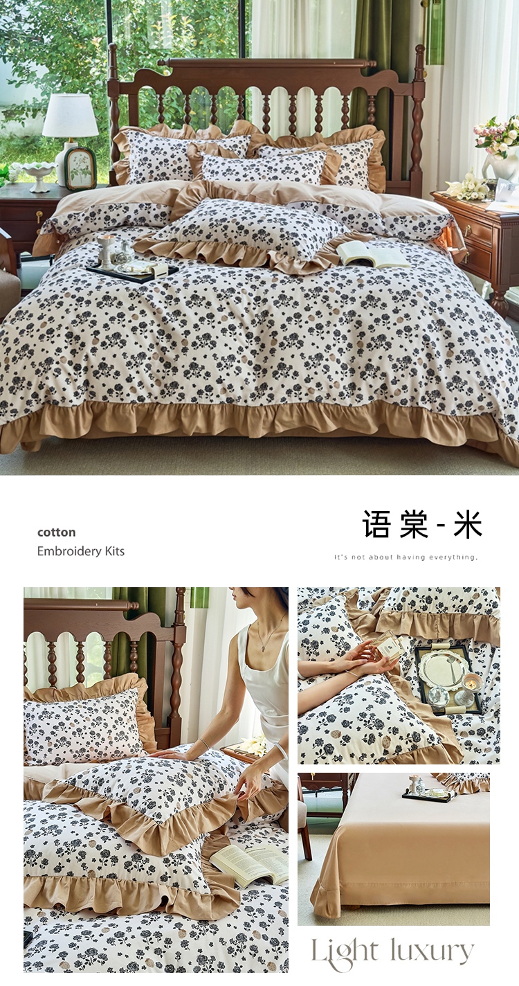 当前位置: 91家纺网 > 商品网购 > 床品套件 > 四件套 > 普通磨毛四件套 > 未来家居 2025秋冬新款全棉法式花边款磨毛四件套 珍妮-咖