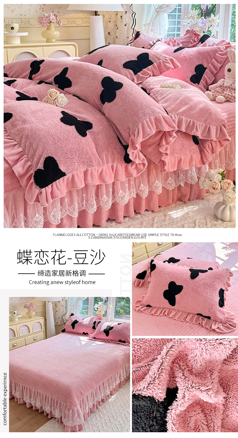 (总)唐人居 2025新款高克重牛奶绒花边夹棉四件套-蝴蝶纷飞,蝴蝶纷飞-浅蓝,蝴蝶纷飞-豆沙,蝴蝶纷飞-浅紫,蝴蝶纷飞-暖橘,蝴蝶纷飞-粉色,蝴蝶纷飞-草绿