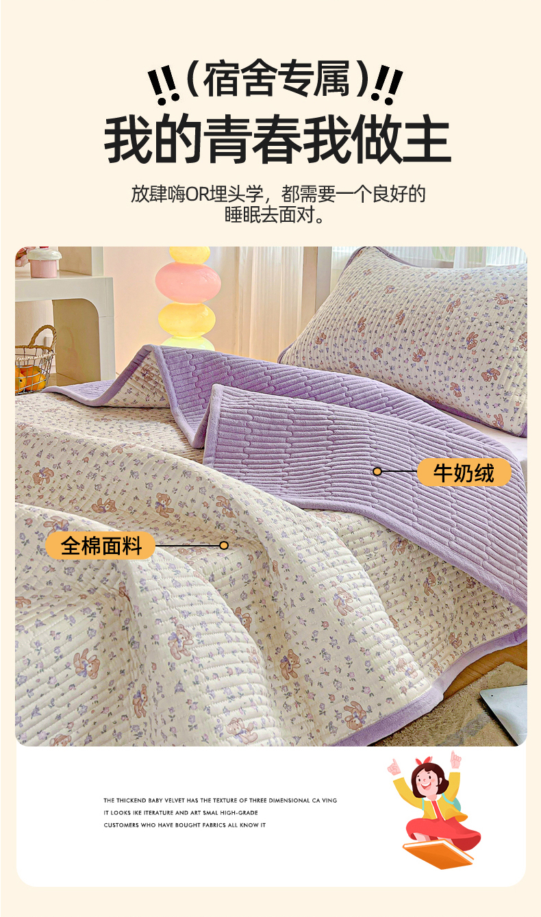 当前位置: 91家纺网 > 商品网购 > 床垫/床褥 > 普通床垫 > 恒尚居 2025新款纯棉牛奶绒学生床垫 双面两用夹棉床单床垫-秋冬款 四季通用-系列二 【清茶小熊】-A纯棉-B牛奶绒