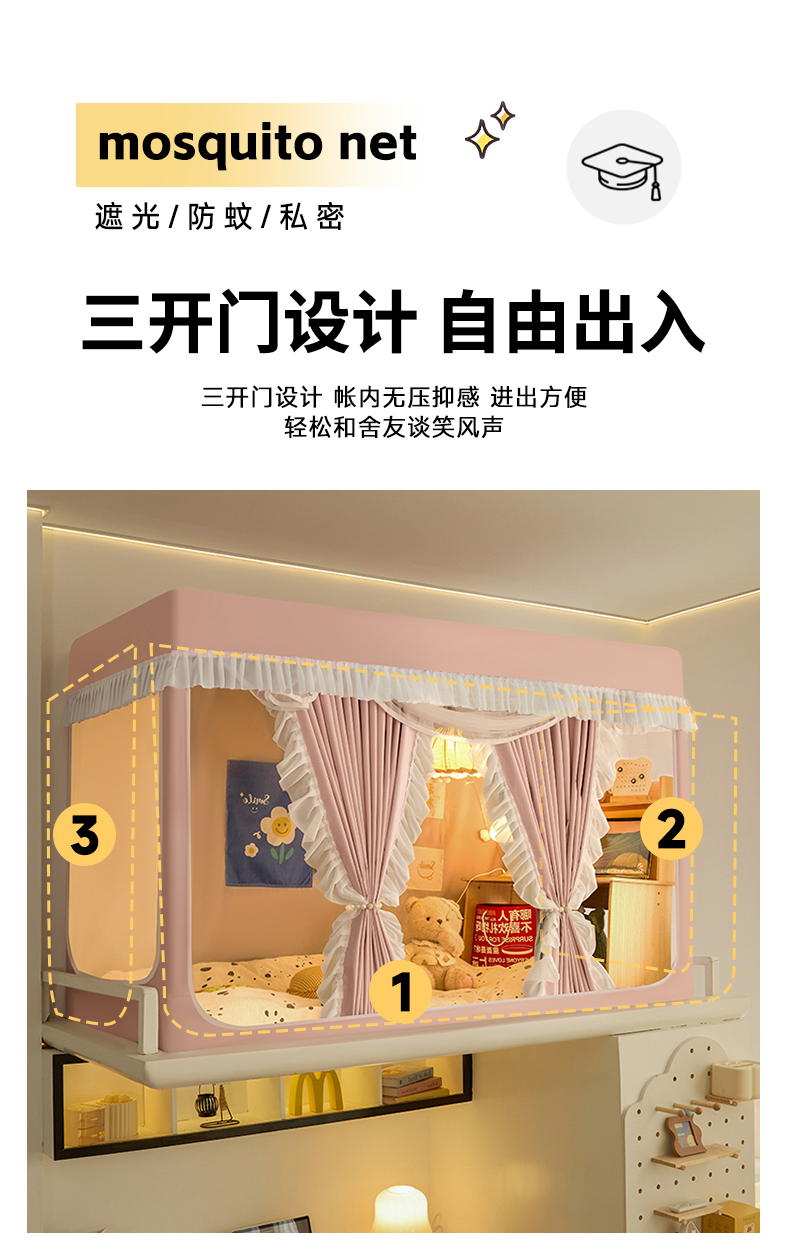 当前位置: 91家纺网 > 商品网购 > 床上用品 > 蚊帐 > 学生蚊帐 > 飞轮海蚊帐 2025新款学生宿舍上下铺加厚遮光蚊帐XZ-93 樱花粉