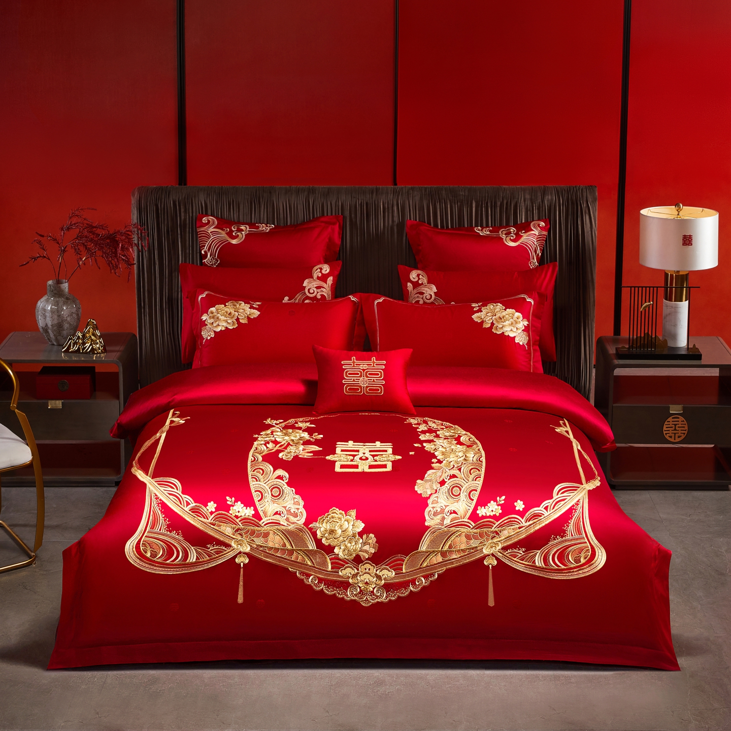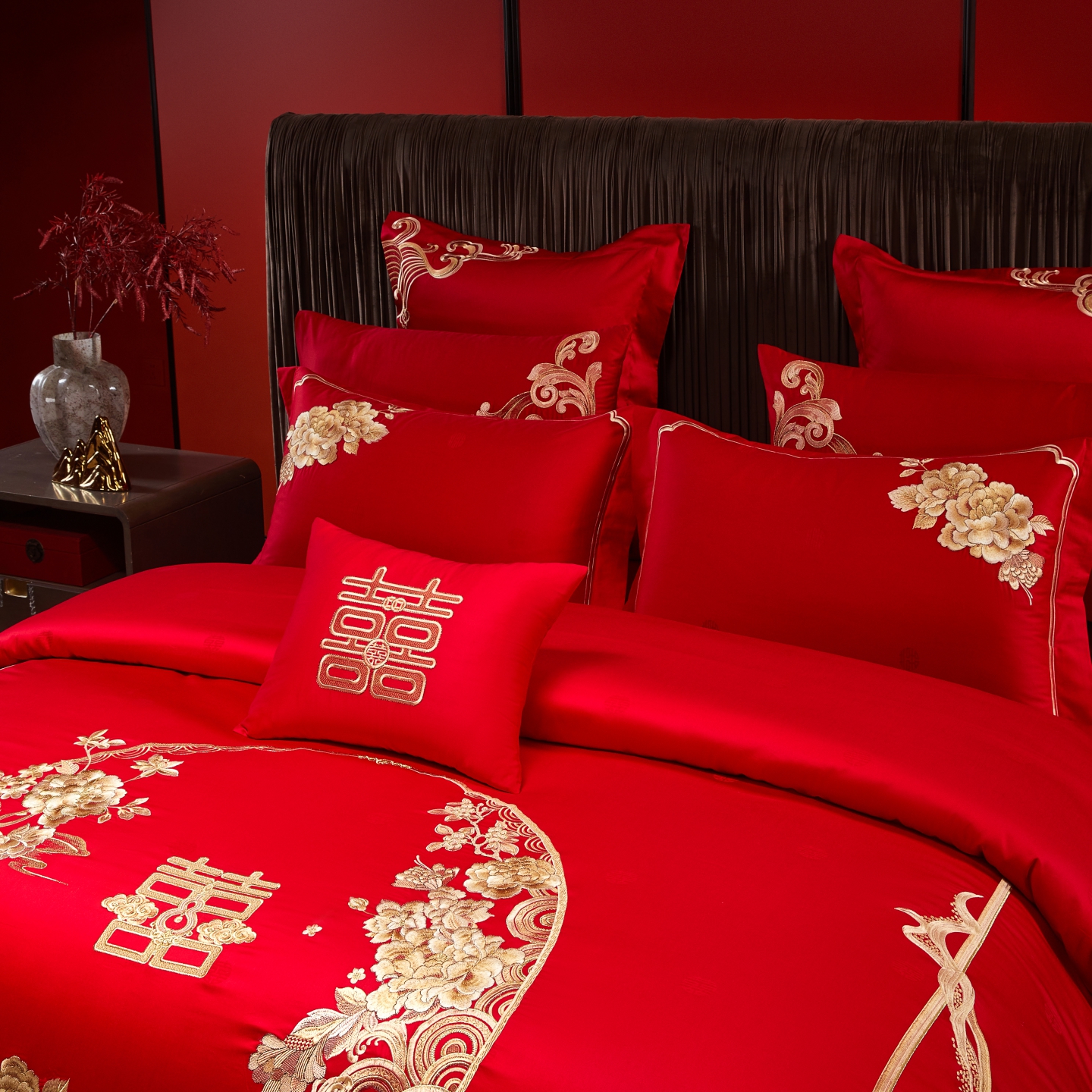 (总)宏羽纺家纺2025新款13372全棉全工艺喷气四件套-最美嫁衣,最美嫁衣