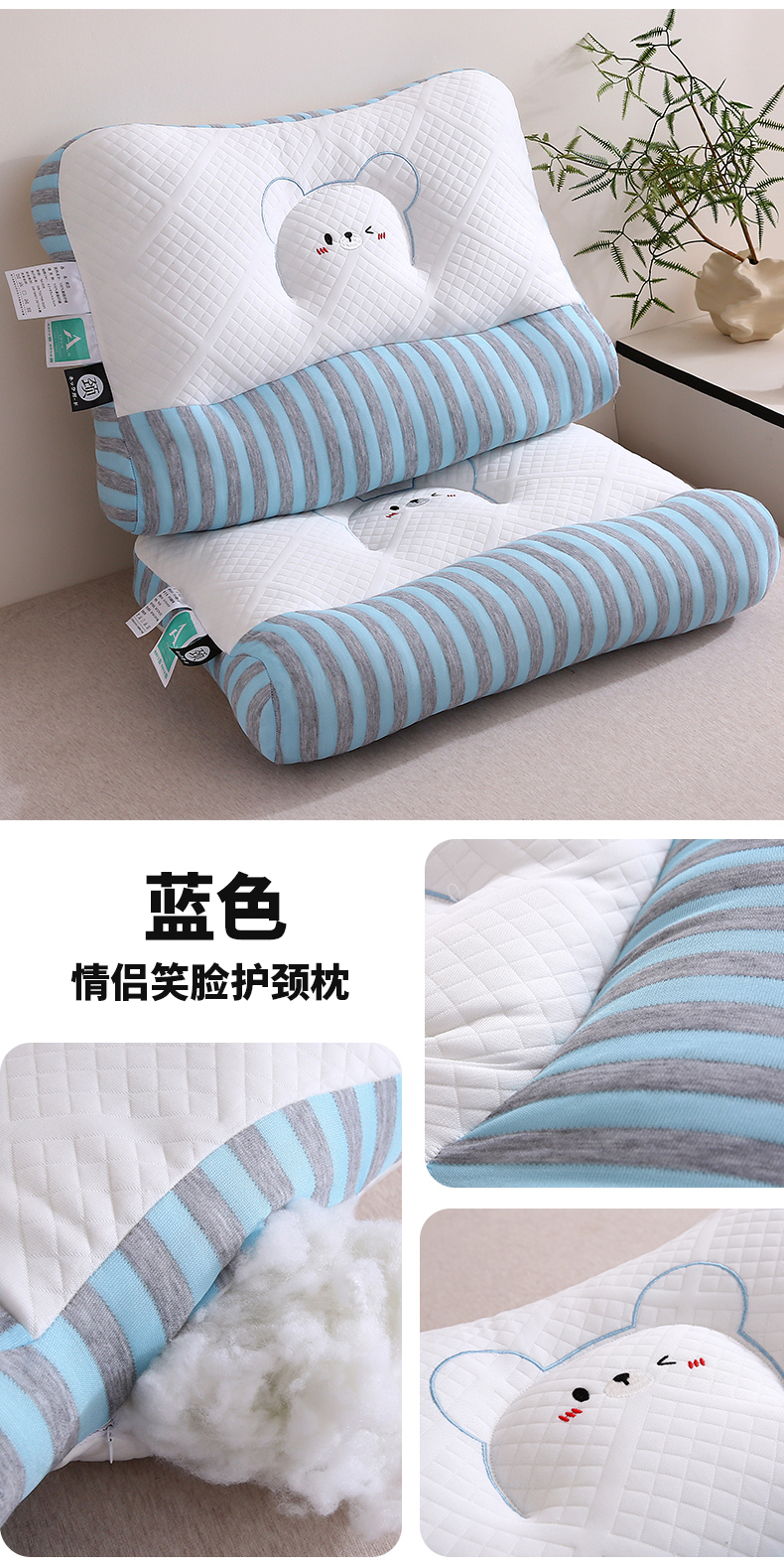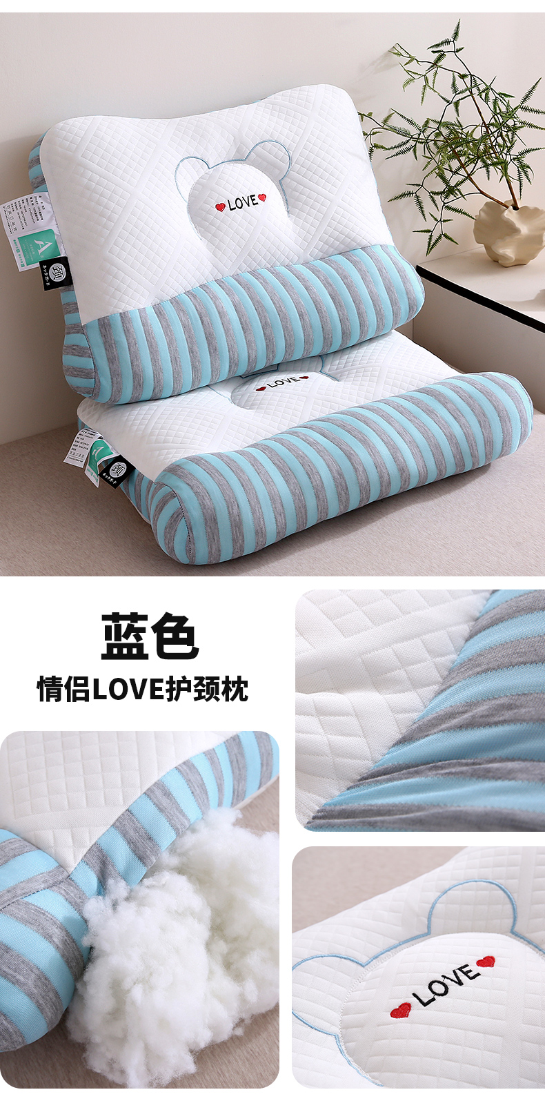(总)梦叶草 2025新款SPA护颈椎枕助睡眠情侣反牵引侧睡枕头枕芯,情侣LOVE护颈枕-粉色,情侣LOVE护颈枕-蓝色,情侣笑脸护颈枕-粉色,情侣笑脸护颈枕-蓝色,组合图仅供展示不可下单