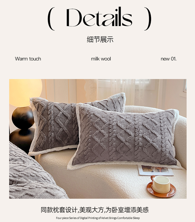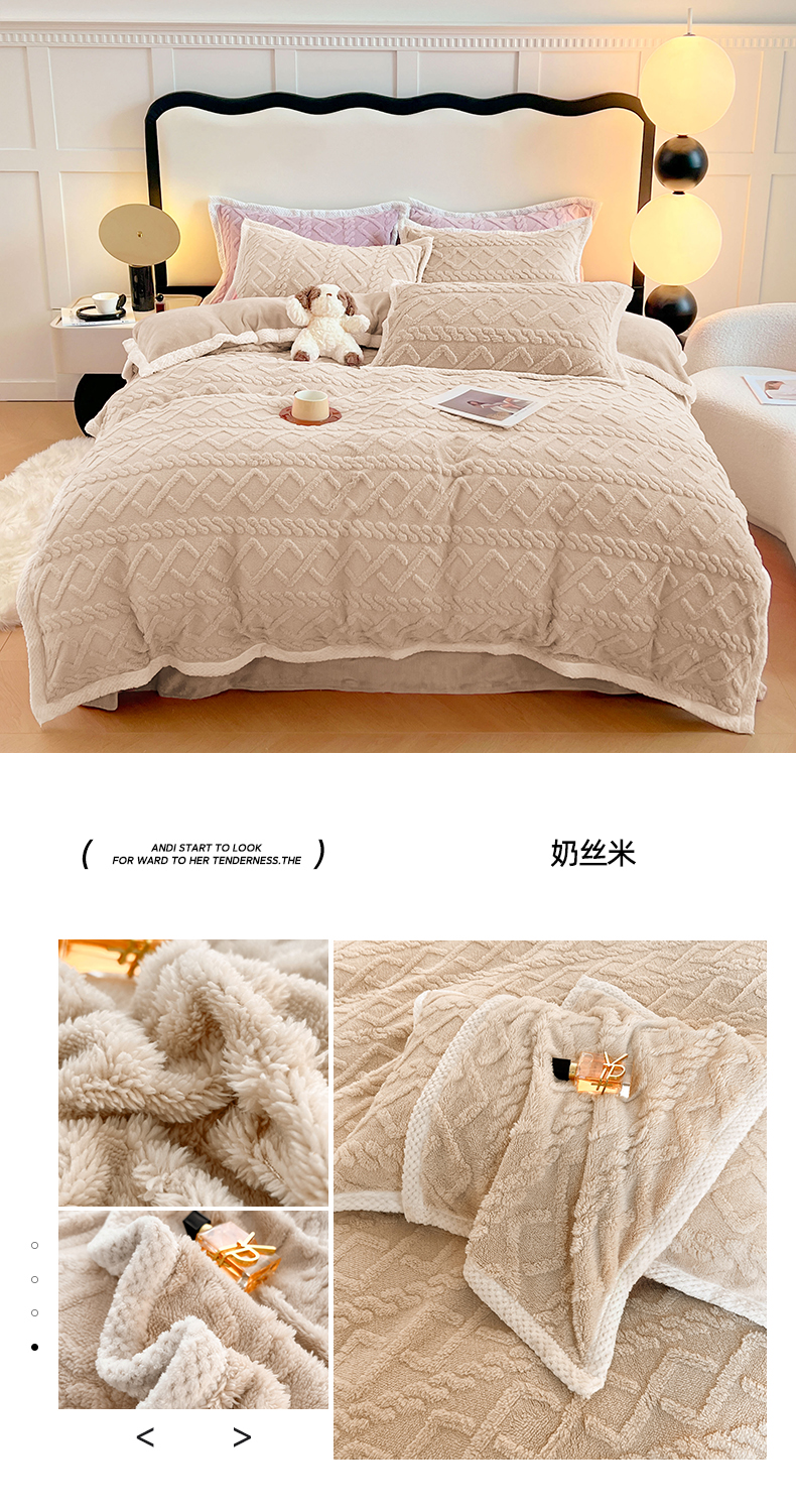 商品名称:悦织湾家纺 轻奢塔芙绒菱形格纯色牛奶绒四件套2025新款床上用品加厚保暖4件套 暮山紫