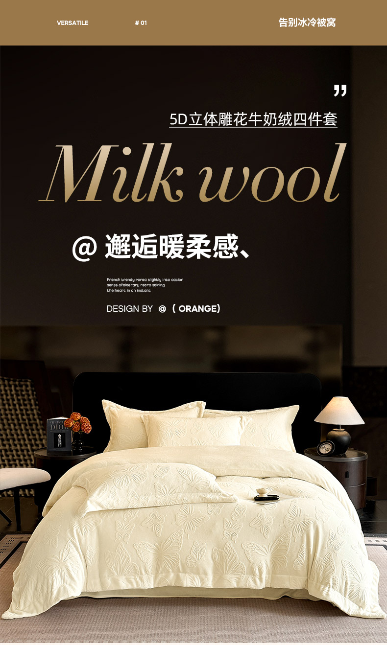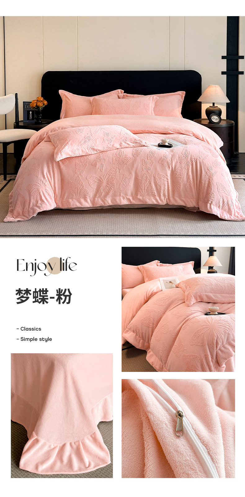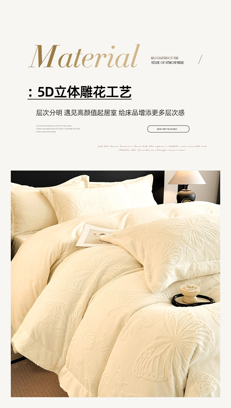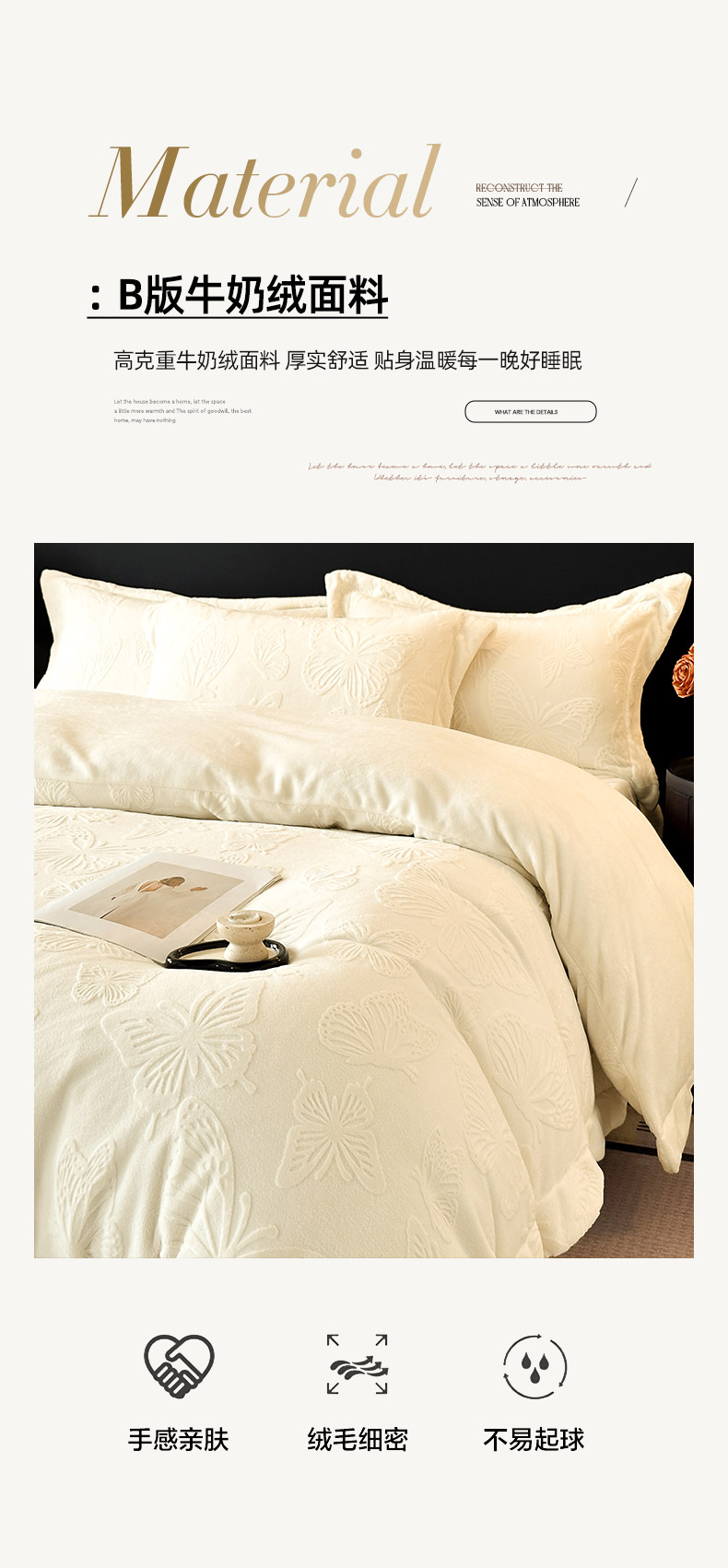 (总)金阳光家纺 2025新款A类立体雕花牛奶绒轻奢风牛奶绒四件套-梦蝶
