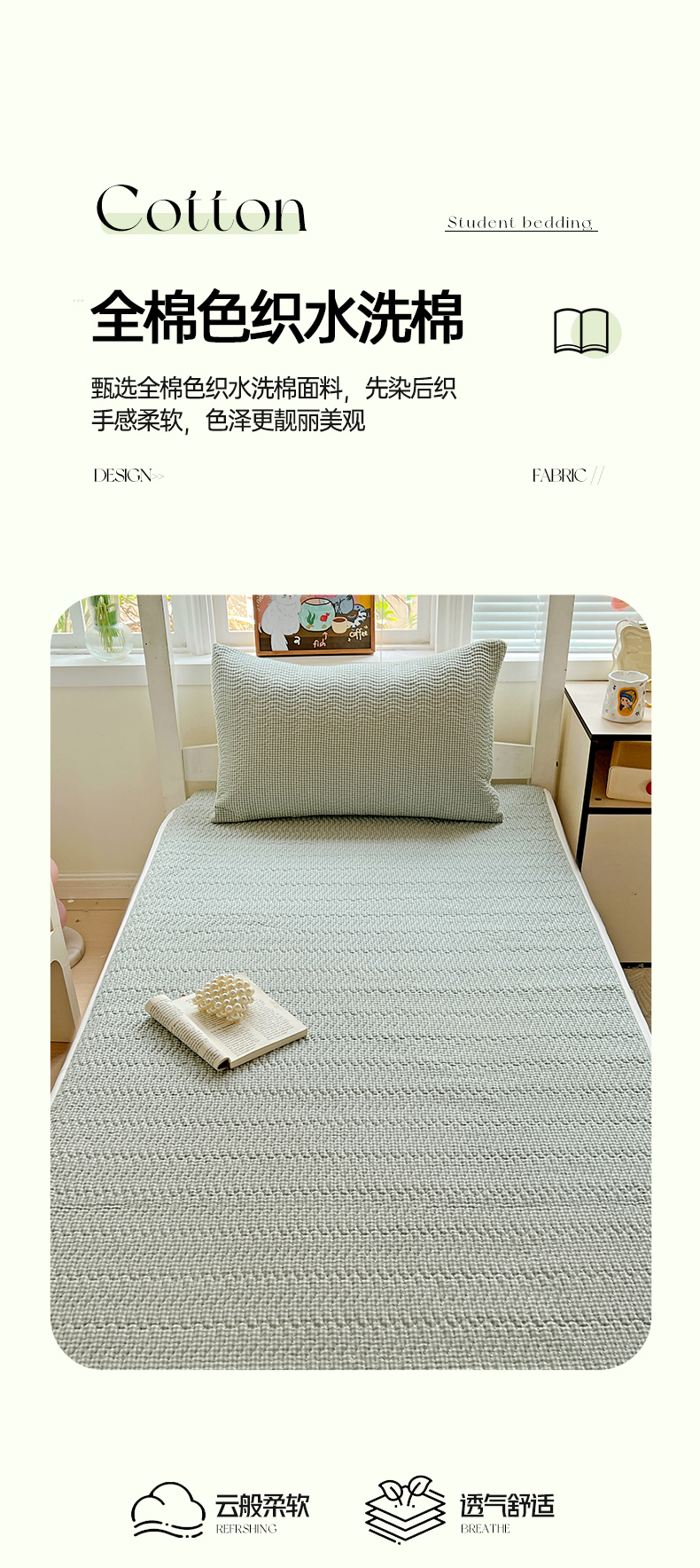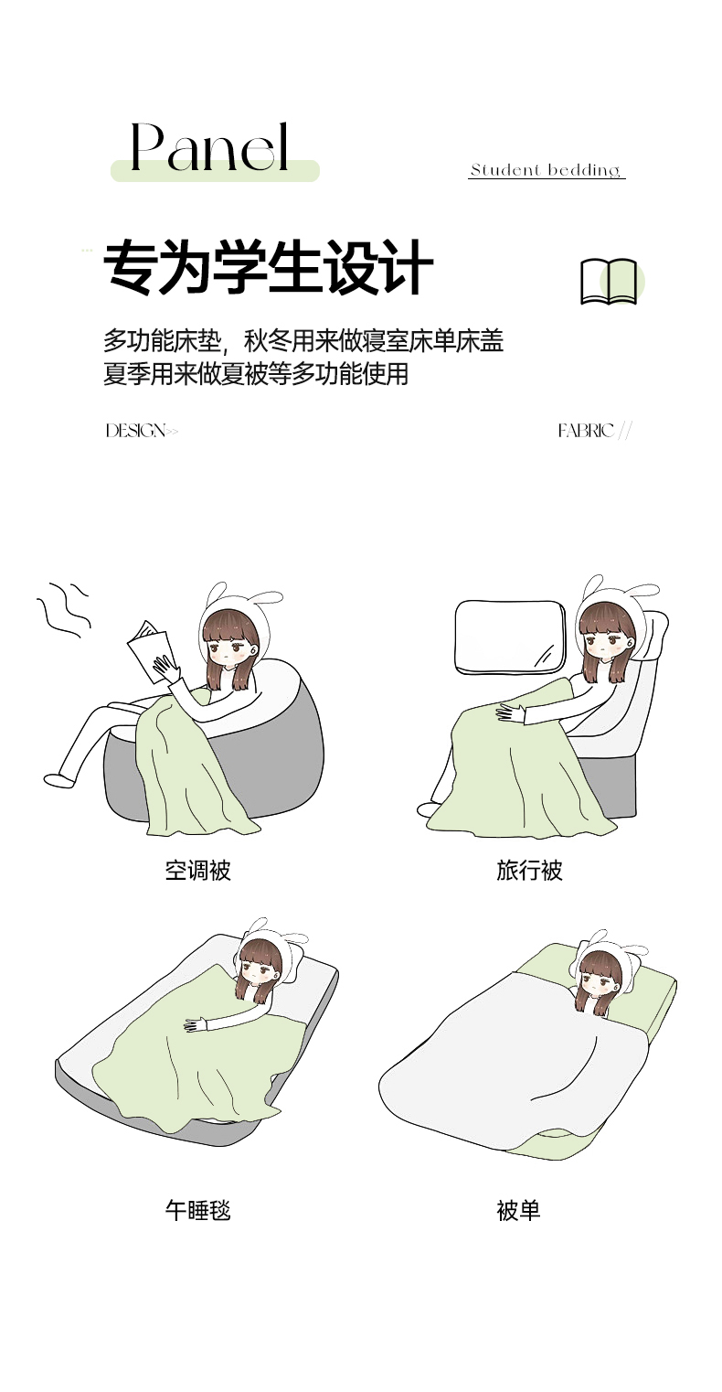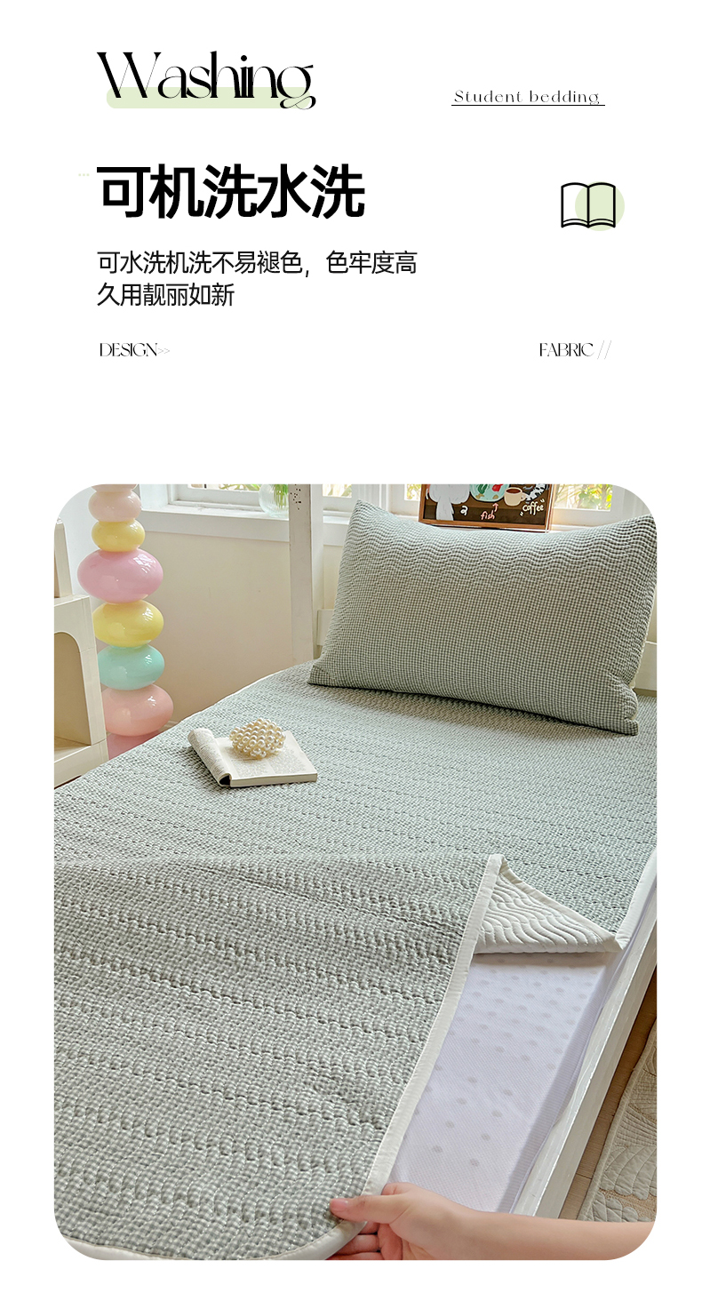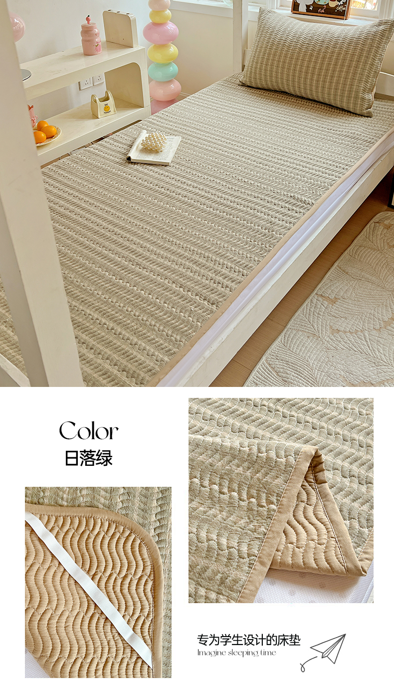 当前位置: 91家纺网 > 商品网购 > 床上用品 > 床盖 > 乐野家居 2025热款学生床全棉色织水洗棉夹棉多功能床垫-床盖 密格绿
