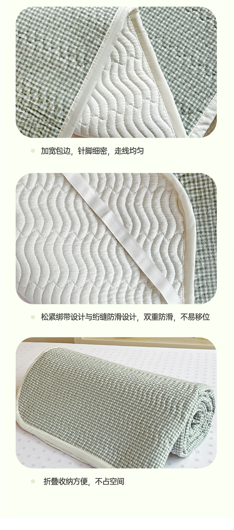 • 91家纺网 家纺一手货源 找家纺 乐野家居 2025热款学生床全棉色织水洗棉夹棉多功能床垫-床盖 密格绿