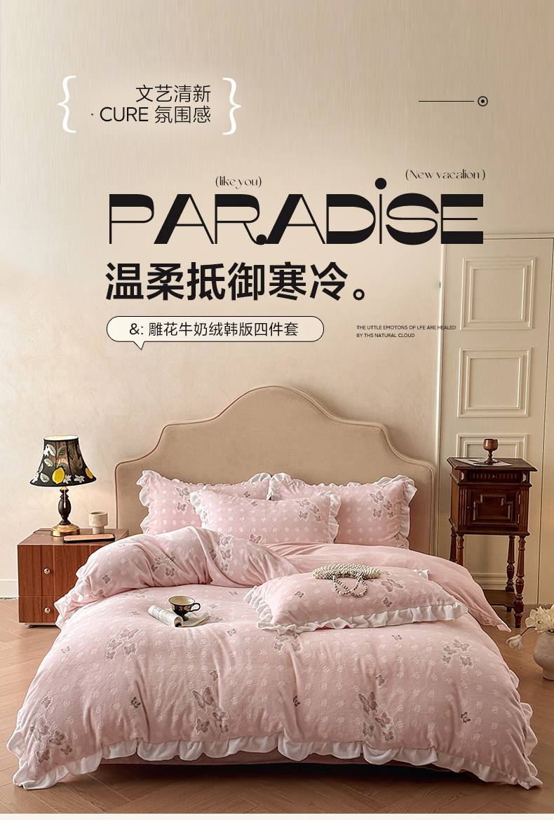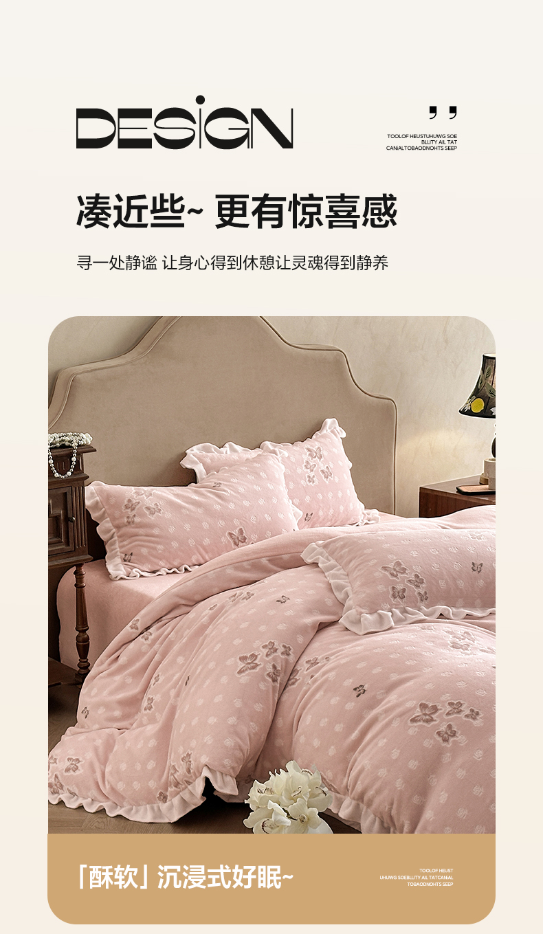 澳梵家居 2025新款雕花牛奶绒韩版四件套-玫瑰蝶语 玫瑰蝶语