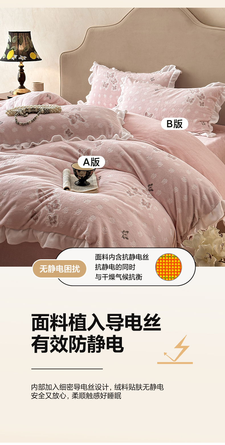 商品名称:澳梵家居 2025新款雕花牛奶绒韩版四件套-玫瑰蝶语 玫瑰蝶语