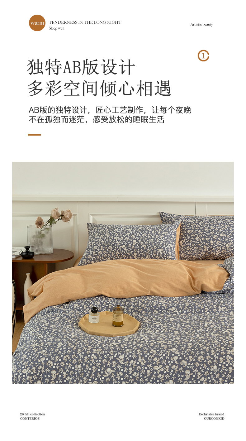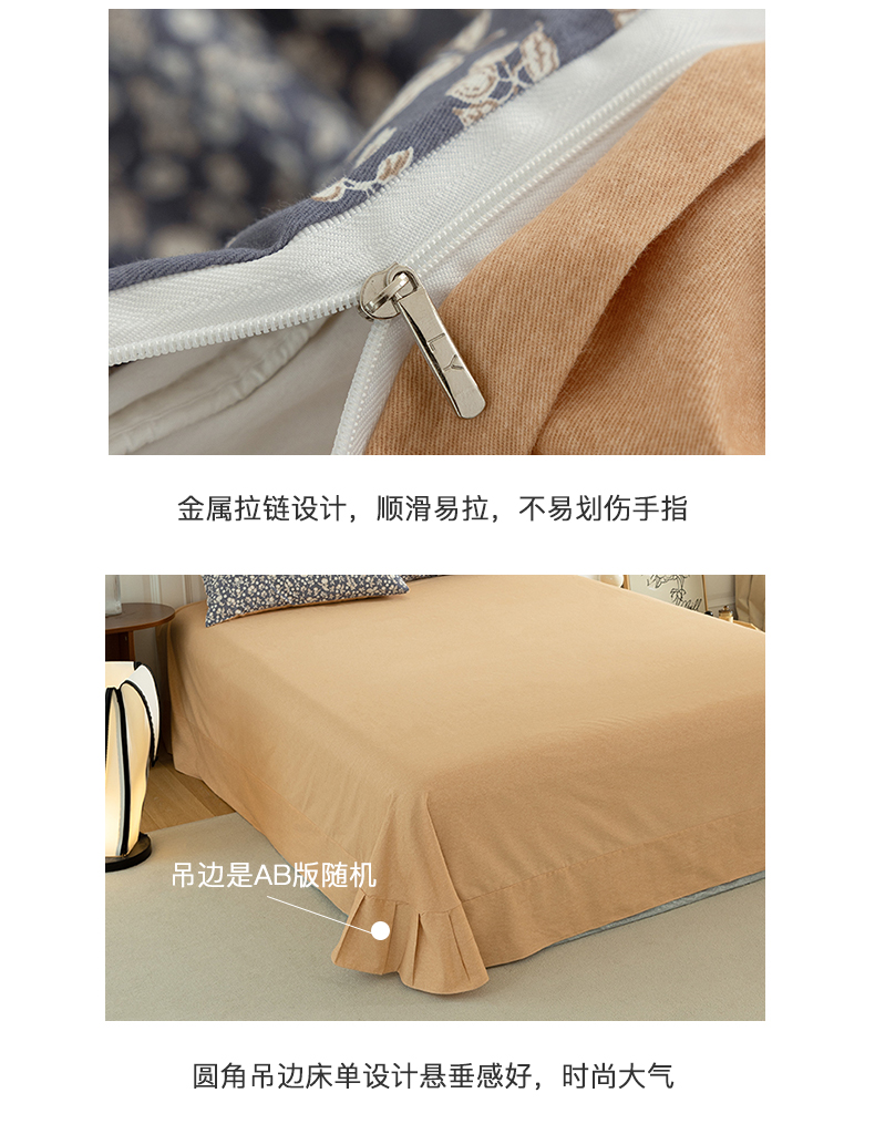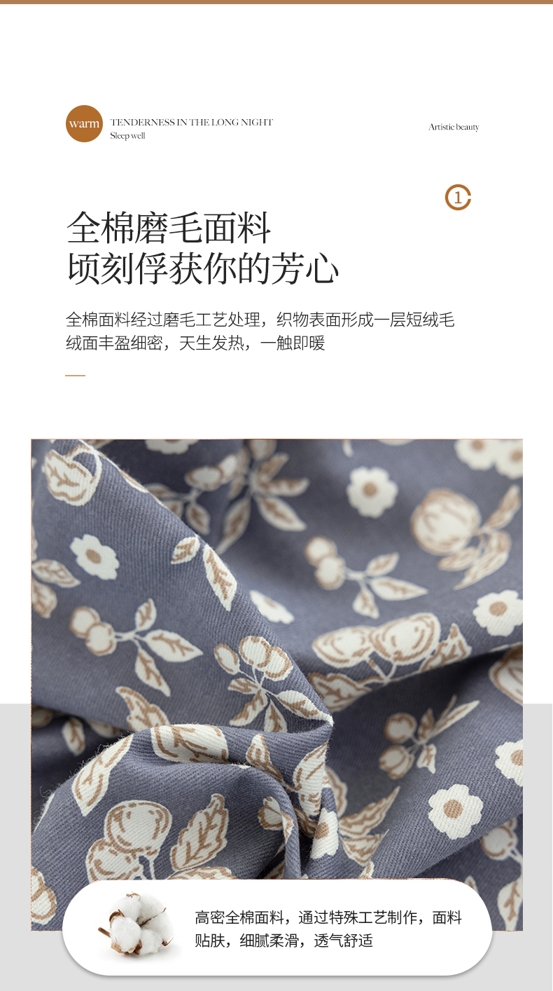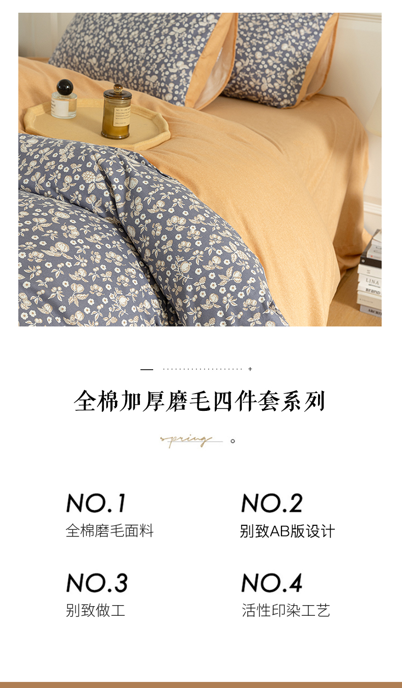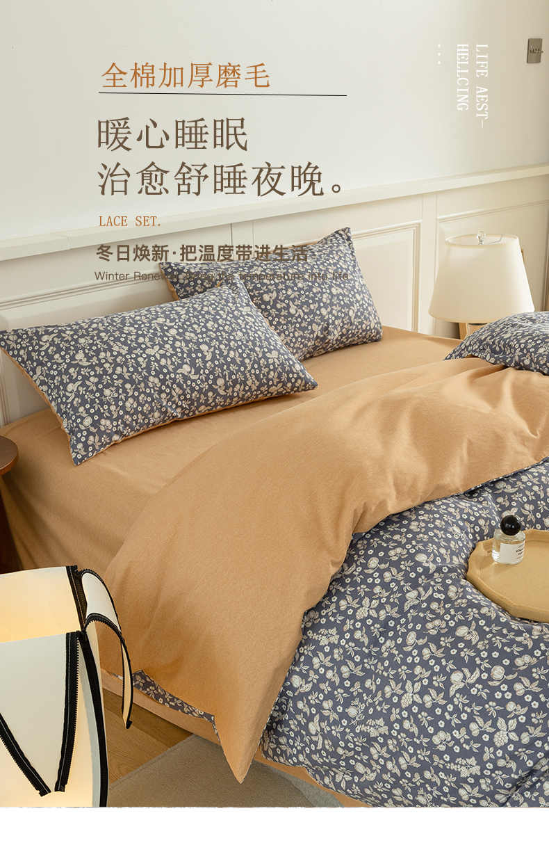商品名称:绫韵家纺 2025秋冬新品生态全棉磨毛冬季纯棉磨毛四件套系列 尔樱