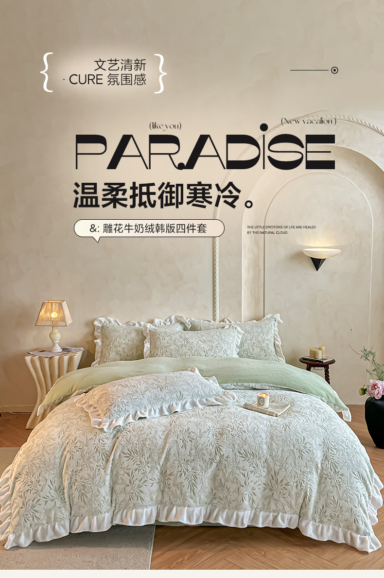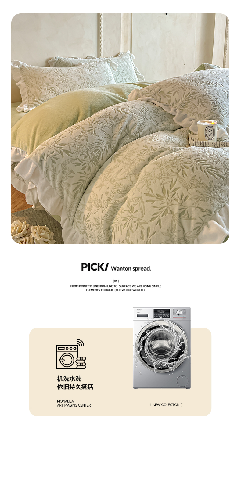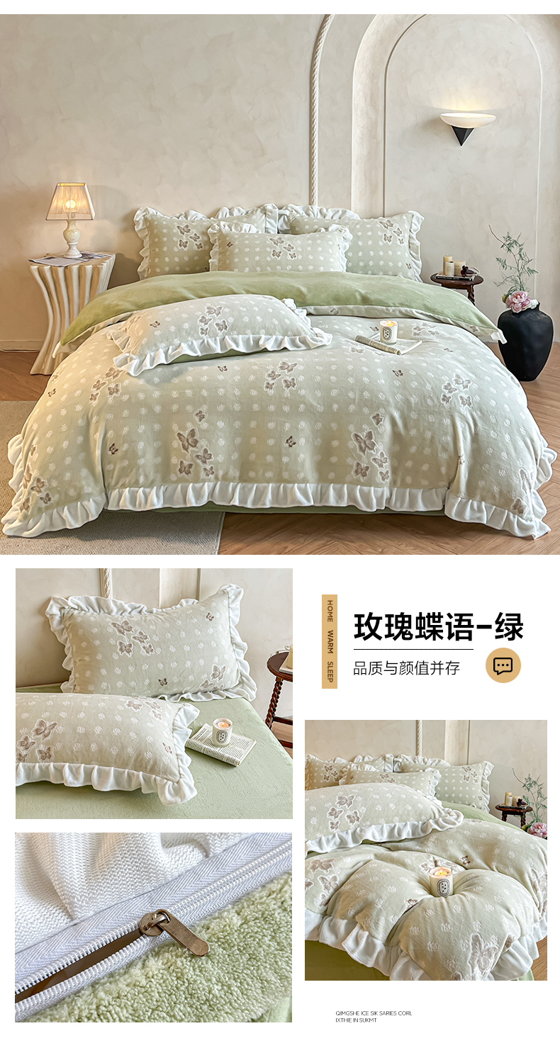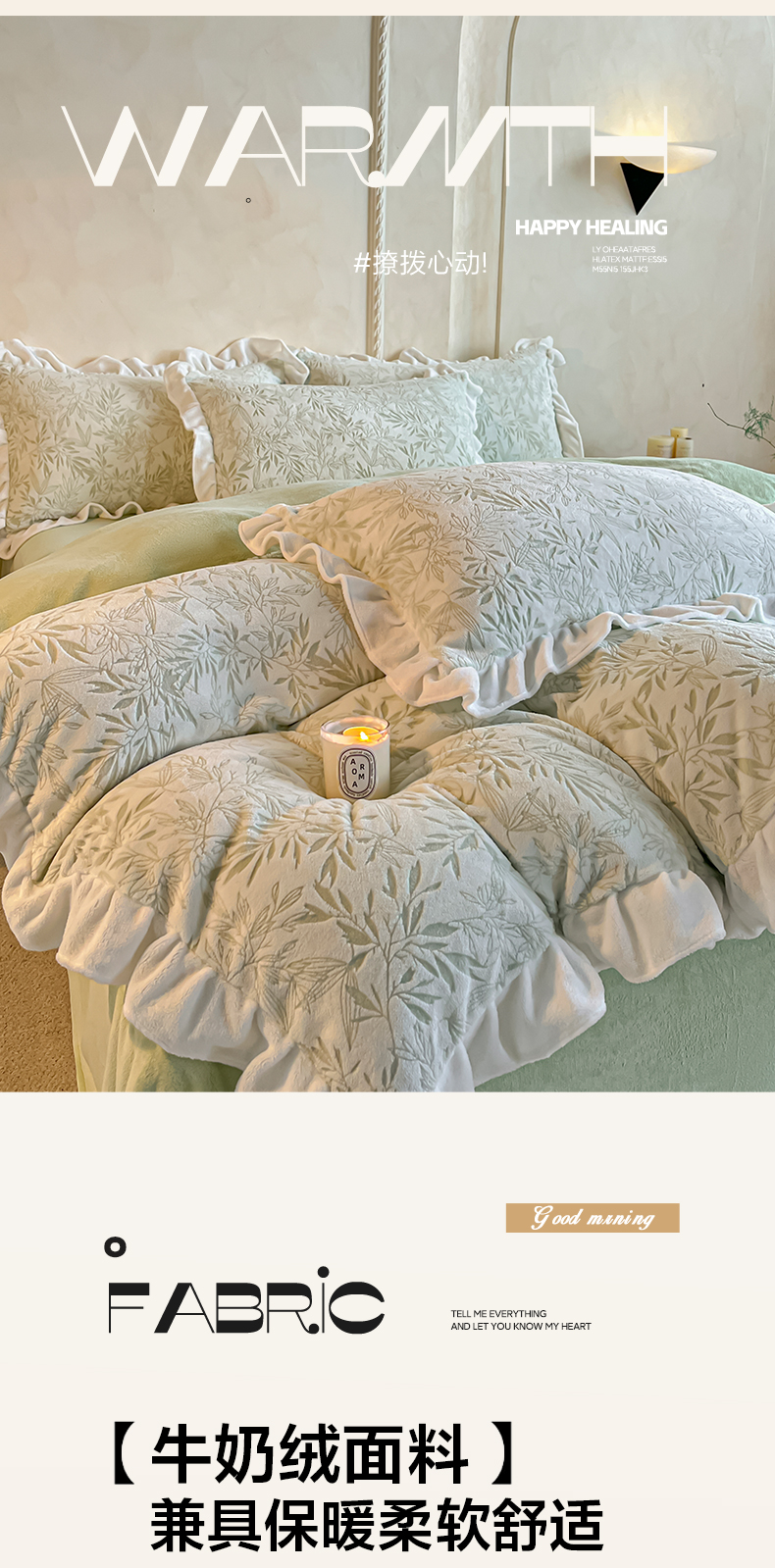 澳梵家居 2025新款雕花牛奶绒韩版四件套-竹影柔柔 玫瑰蝶语-绿