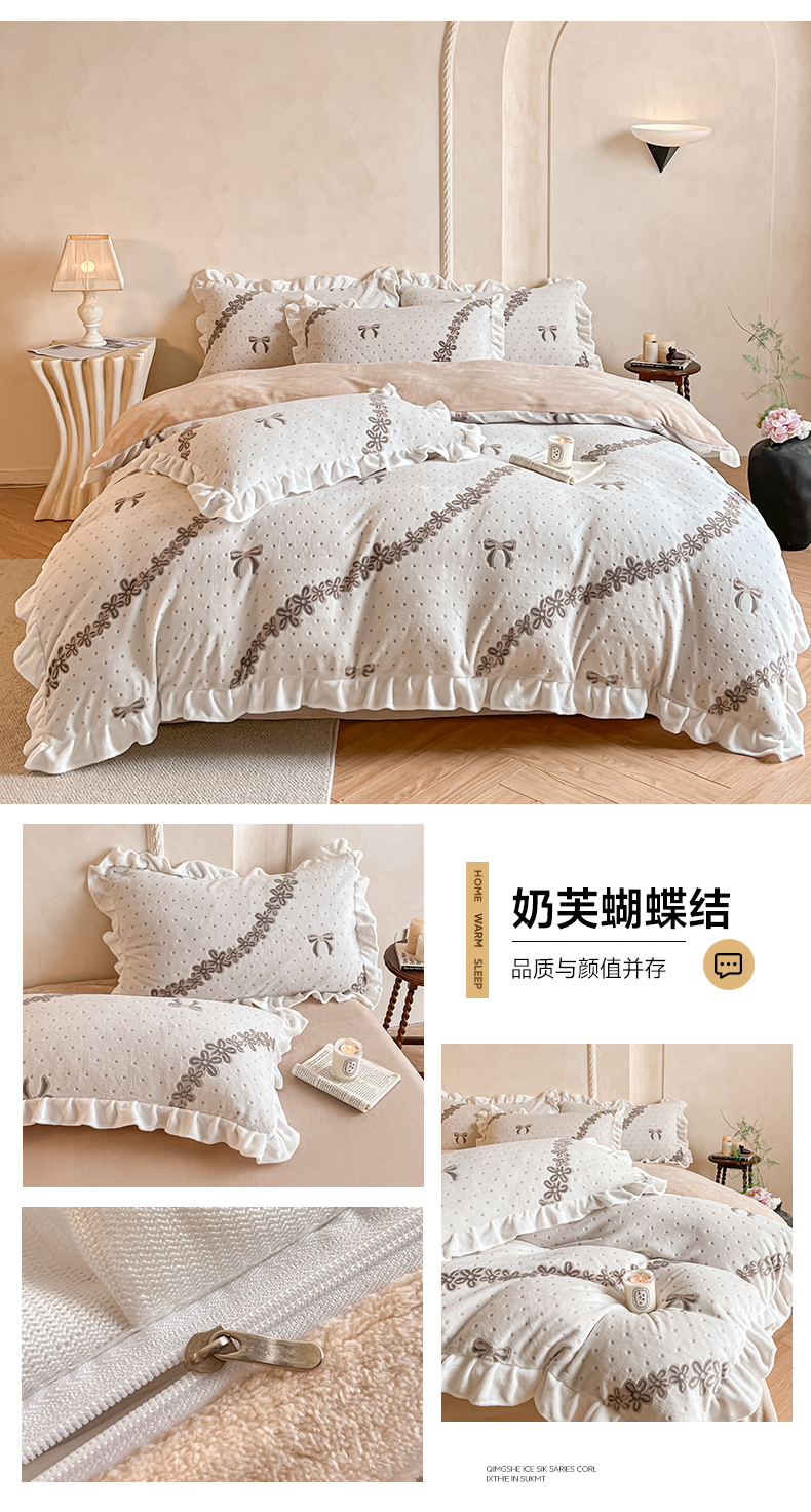 (总)澳梵家居 2025新款雕花牛奶绒韩版四件套-竹影柔柔,竹影柔柔,灰绿蝴蝶结,灰绿樱桃,卡其叶影,绿色叶影,漫调花语-粉,漫调花语-绿,玫瑰蝶语-蓝,玫瑰蝶语-绿,奶芙蝴蝶结,糖霜玫瑰-卡其
