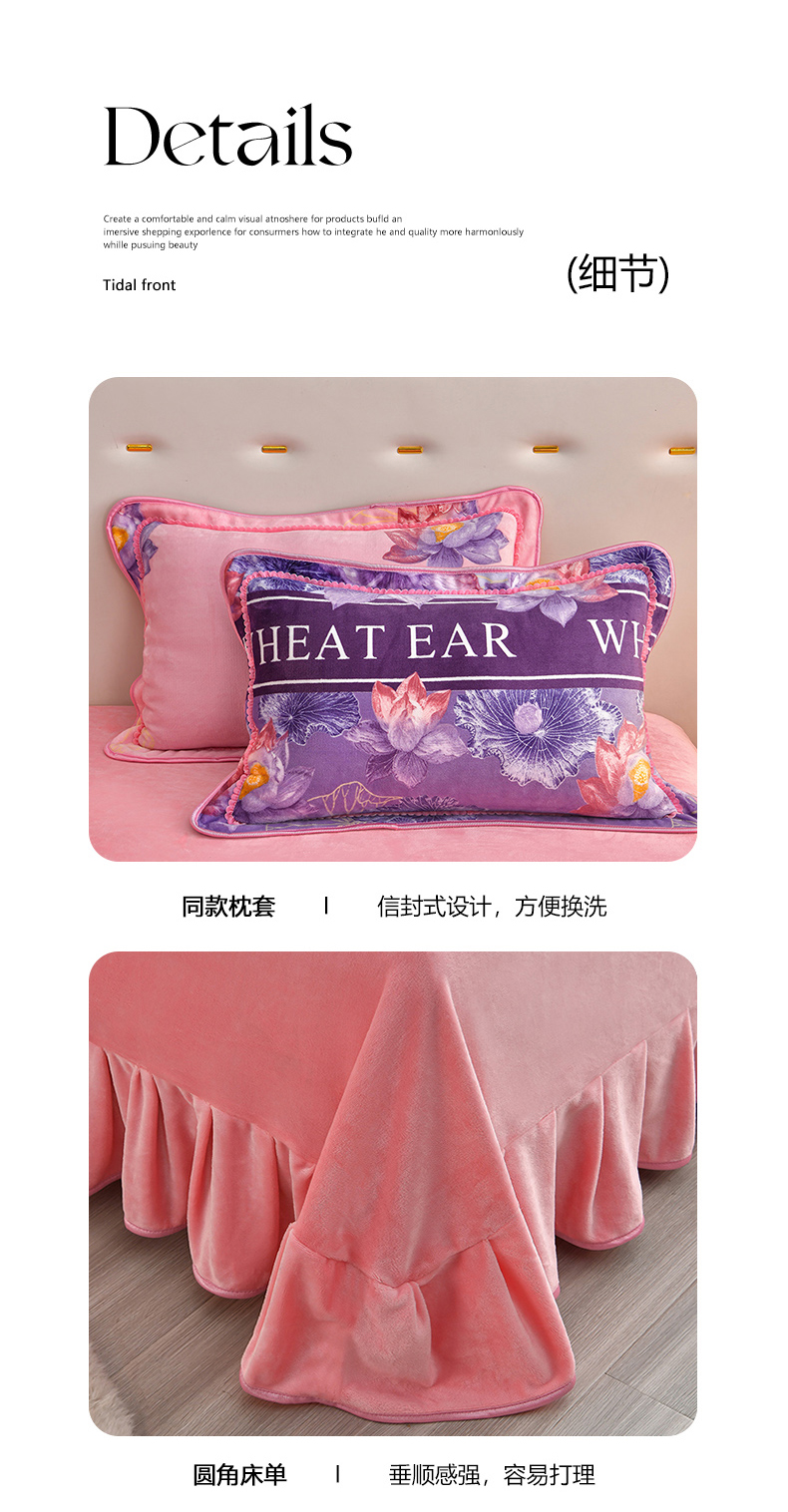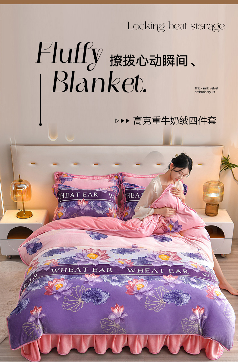 亿品2025直播爆款9.5斤牛奶绒四件套加厚保暖床裙四件套 紫韵