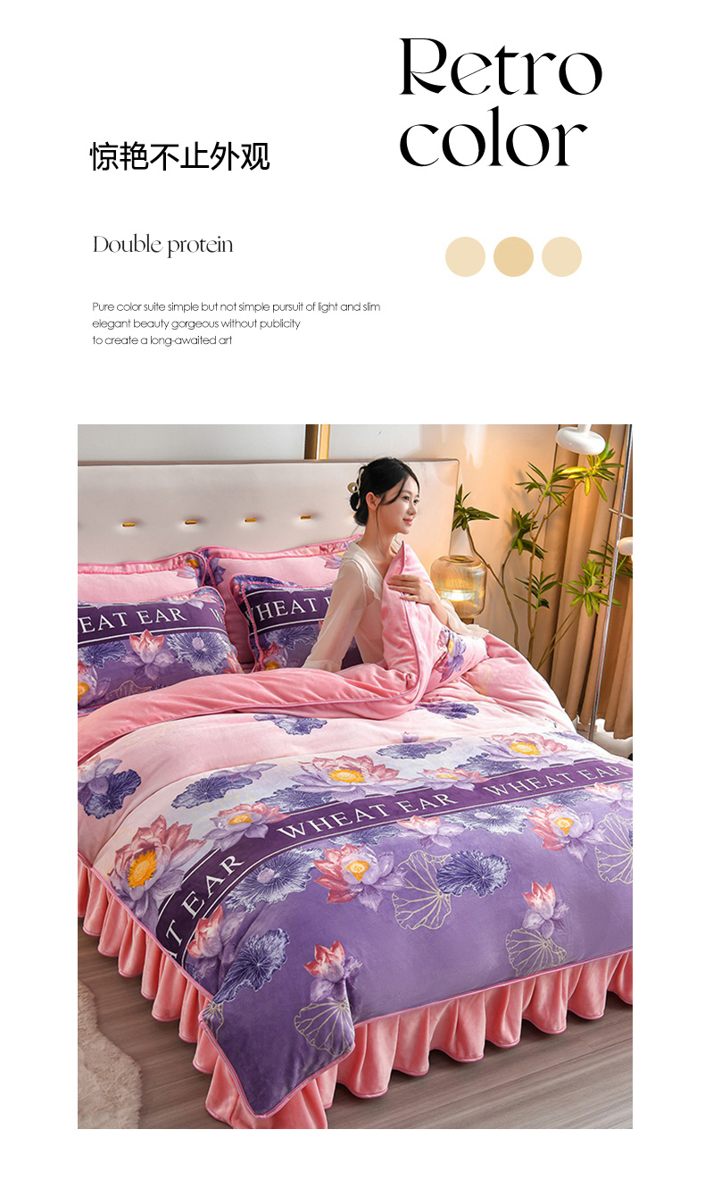 商品名称:亿品2025直播爆款9.5斤牛奶绒四件套加厚保暖床裙四件套 紫韵
