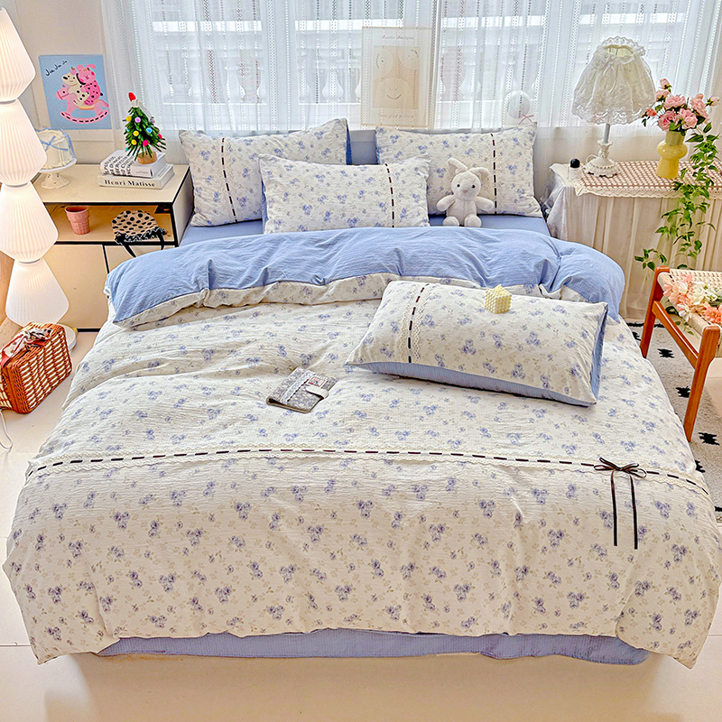 商品名称:典曼家纺 2025新款古法花边蝴蝶结四件套 雅漫花语