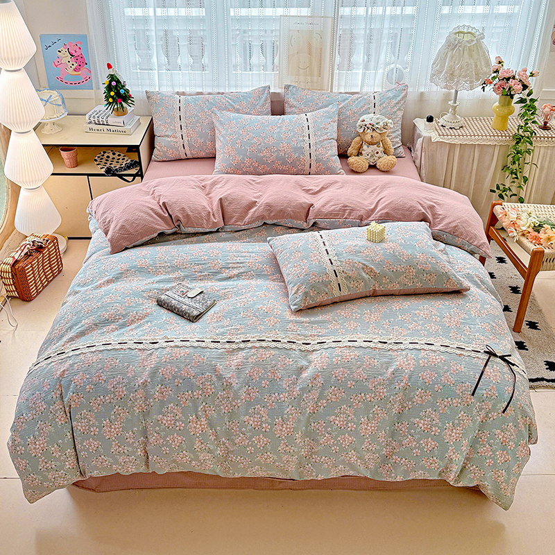 (总)典曼家纺 2026新款A类全棉华夫格提花贝壳边四件套,风月-兰,光遇,简森-兰,卡布-白,萌动时光-咖,派克-灰,伊柠,云梦星河-兰