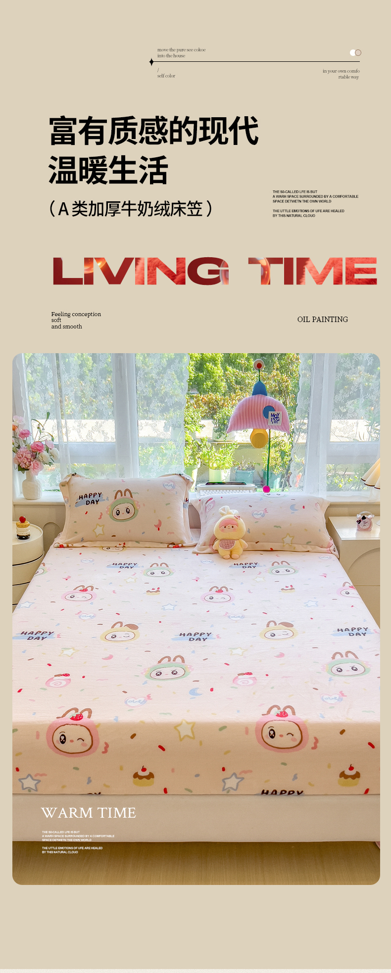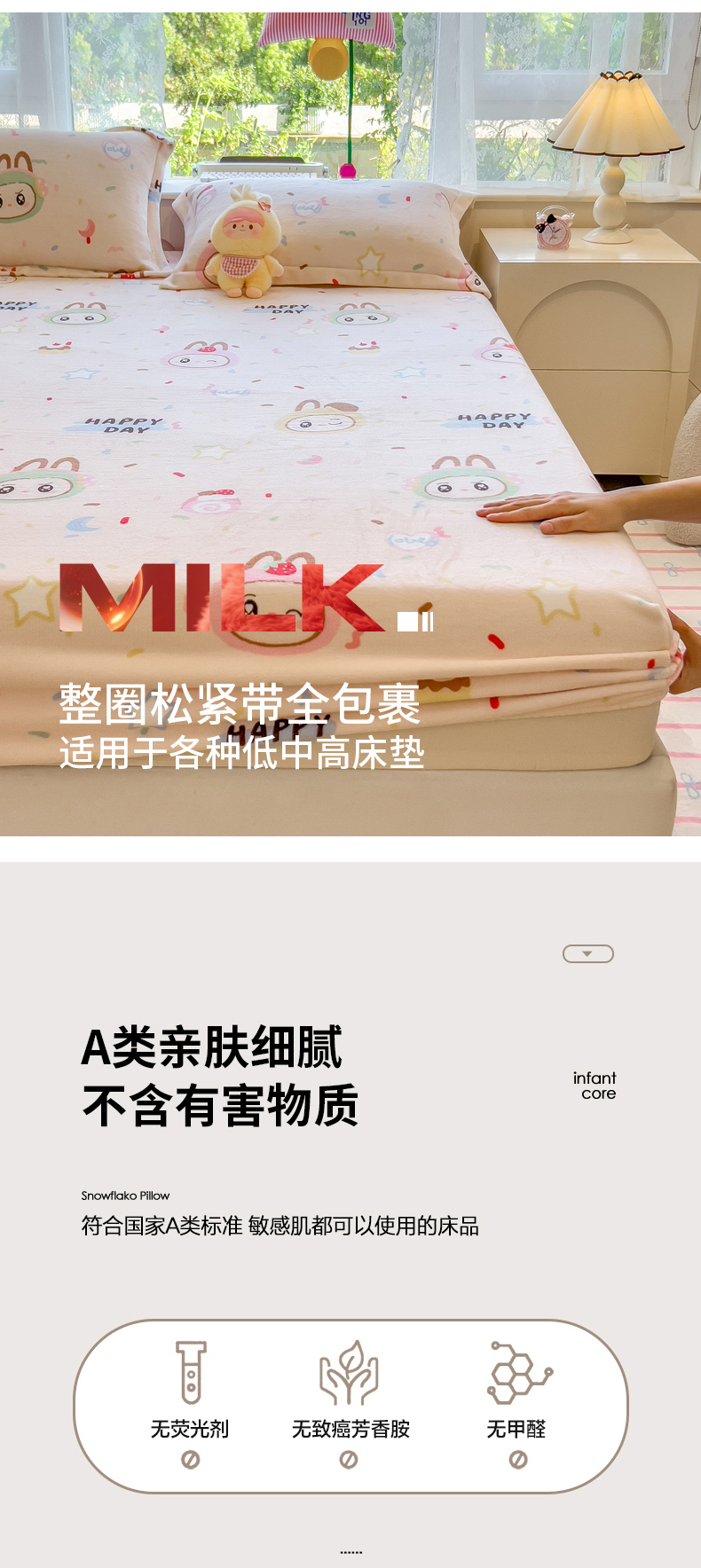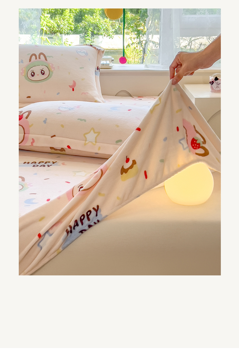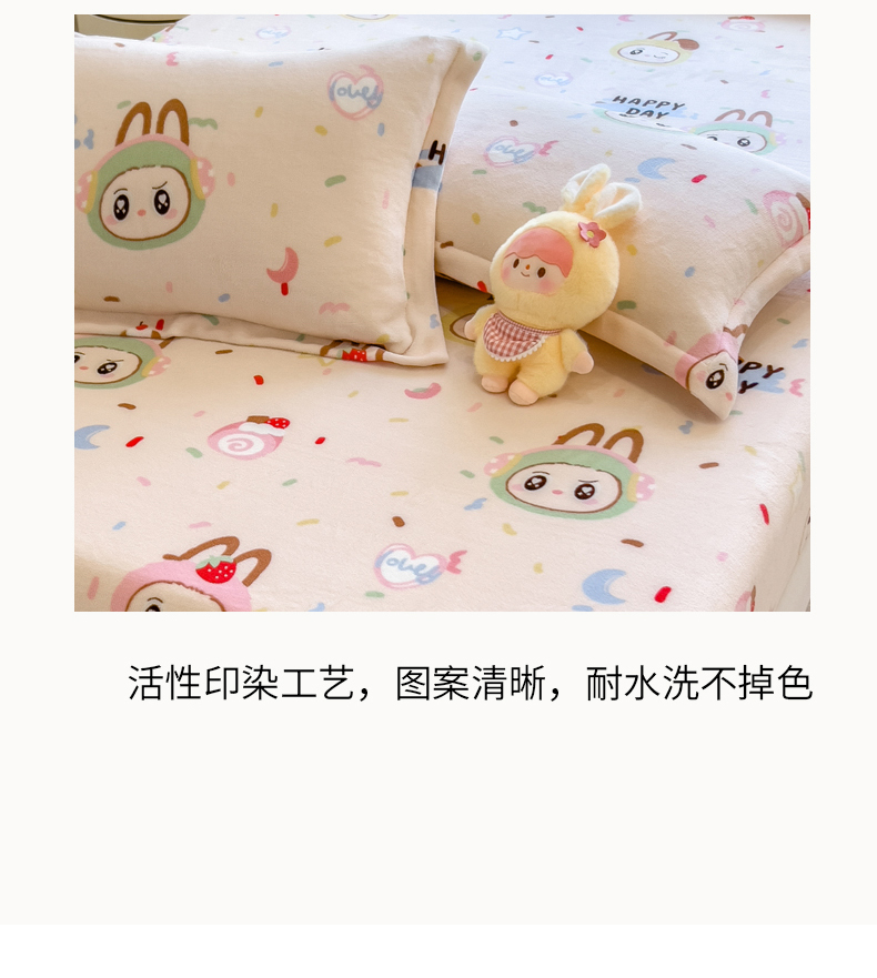 • 91家纺网 家纺一手货源 找家纺 丝羽坊 2025新款印花小清新牛奶绒印花床笠三件套 萌布布