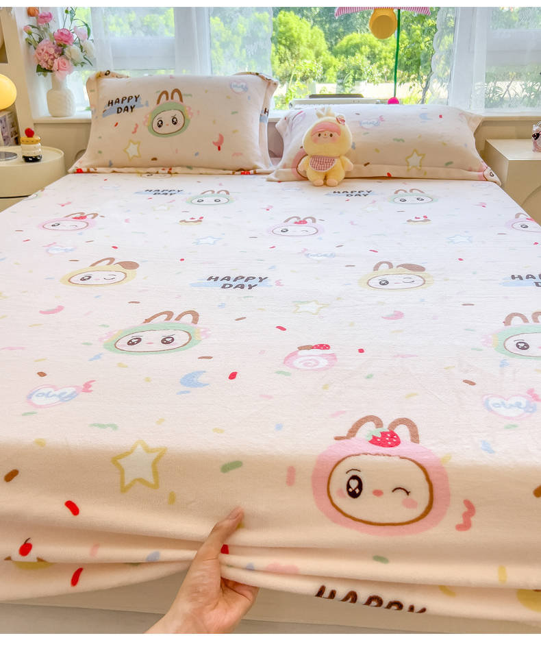 丝羽坊 2025新款印花小清新牛奶绒印花床笠三件套 萌布布