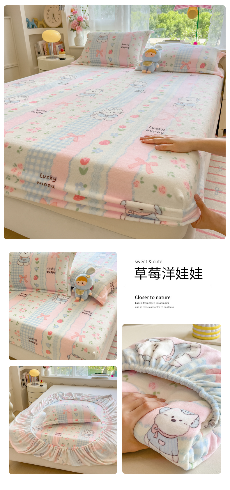 (总)丝羽坊 2025新款印花小清新牛奶绒印花床笠三件套,甜心猫,草莓洋娃娃,花的邂逅,公主兔兔,花间密语,卡皮巴拉,曼妙时光,萌布布,圈圈点点,星空物语,布丁犬,小美好,幸运小狗