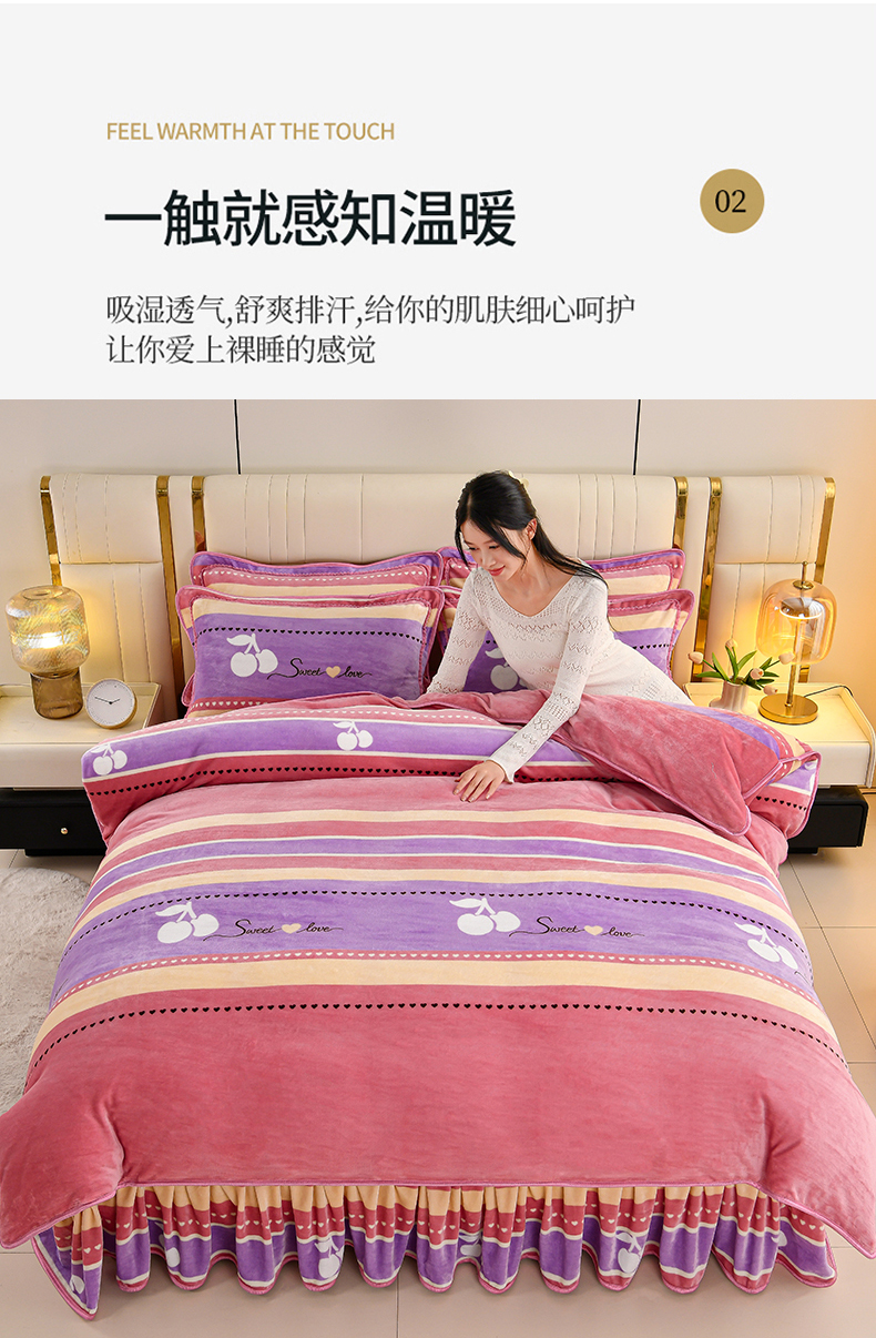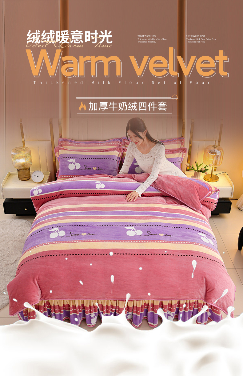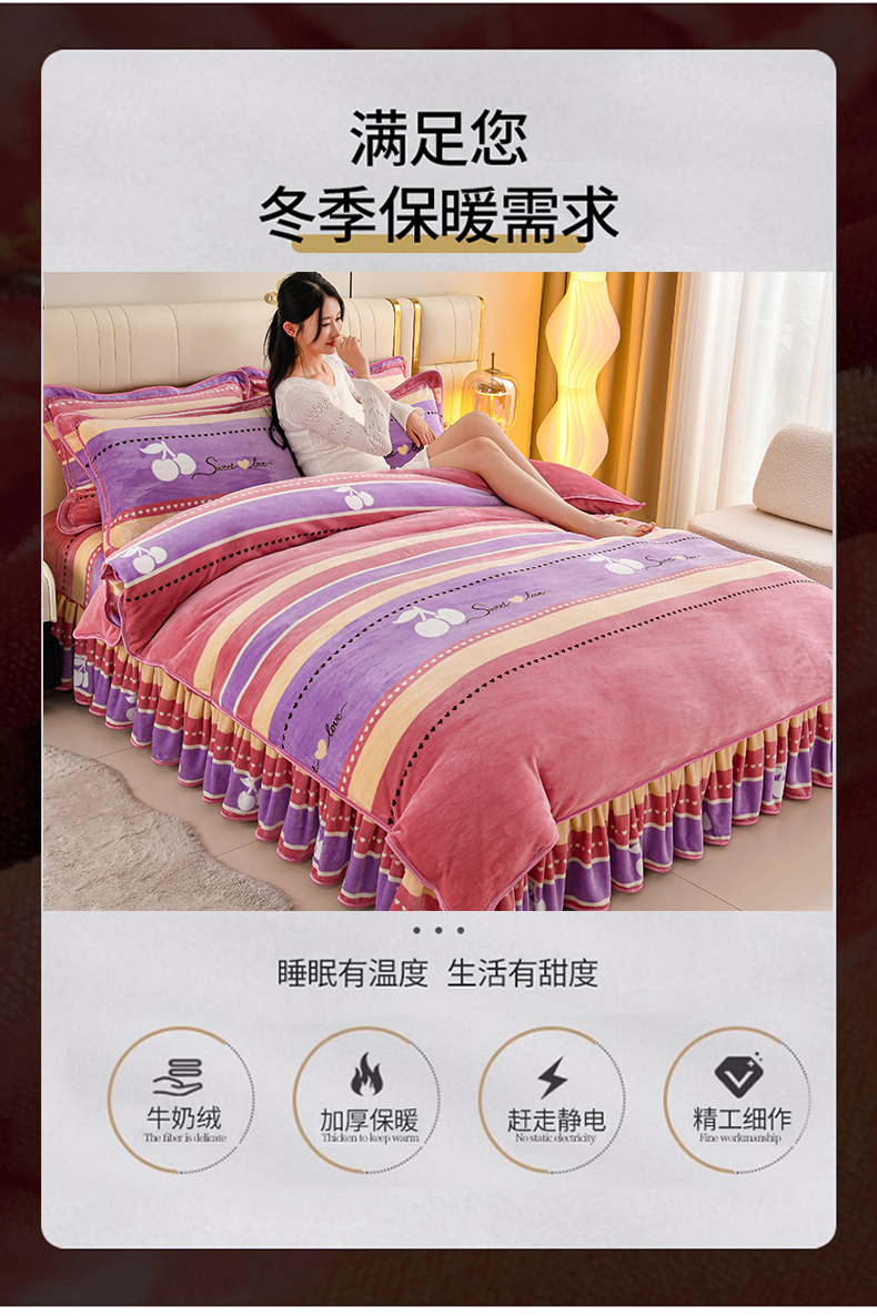 绒品荟家纺 2025新款8.5斤加厚牛奶绒金貂绒法莱绒四件套三件套冬季法兰绒床裙款高克重恋语